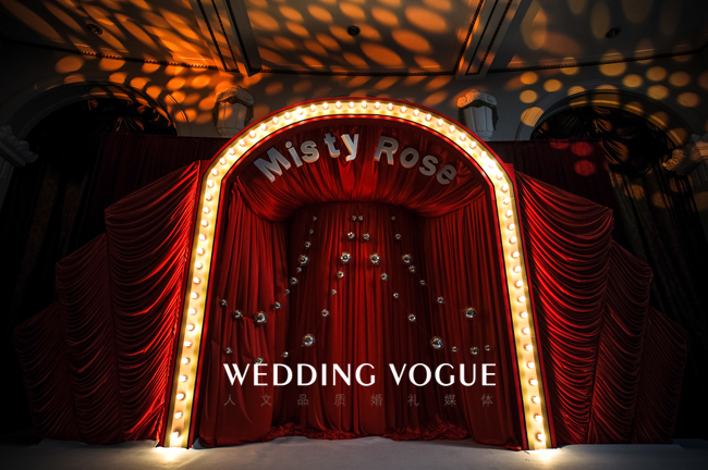 优雅奔放的美式婚礼,带着细腻的复古情怀,浓浓的红色让人无法抗拒。百老汇舞台剧即将拉开帷幕,玫瑰在雾色中已经悄悄绽放...