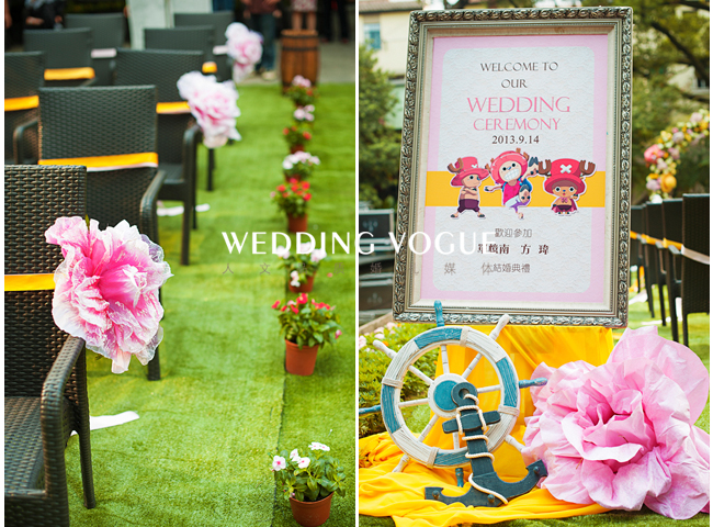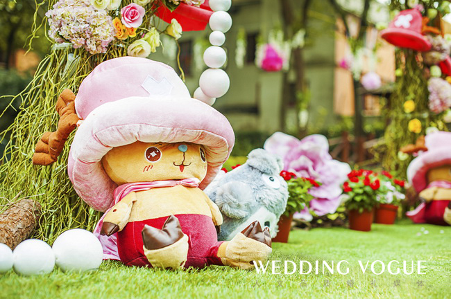 婚礼上可爱的卡通人物让人们又回到的那个童真的少年时代,重温了一下儿时的梦想,清新的色彩搭配让人仿佛置身于动漫世界。整场婚礼的布置包含了twins对两位新人诚挚的祝福……