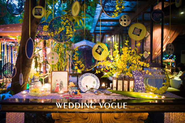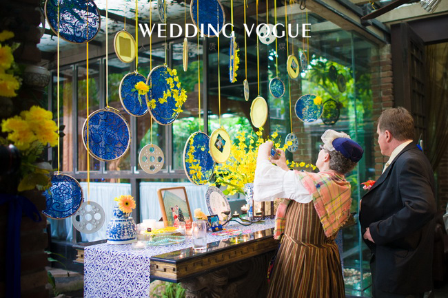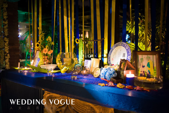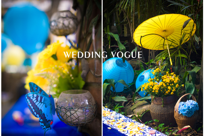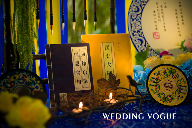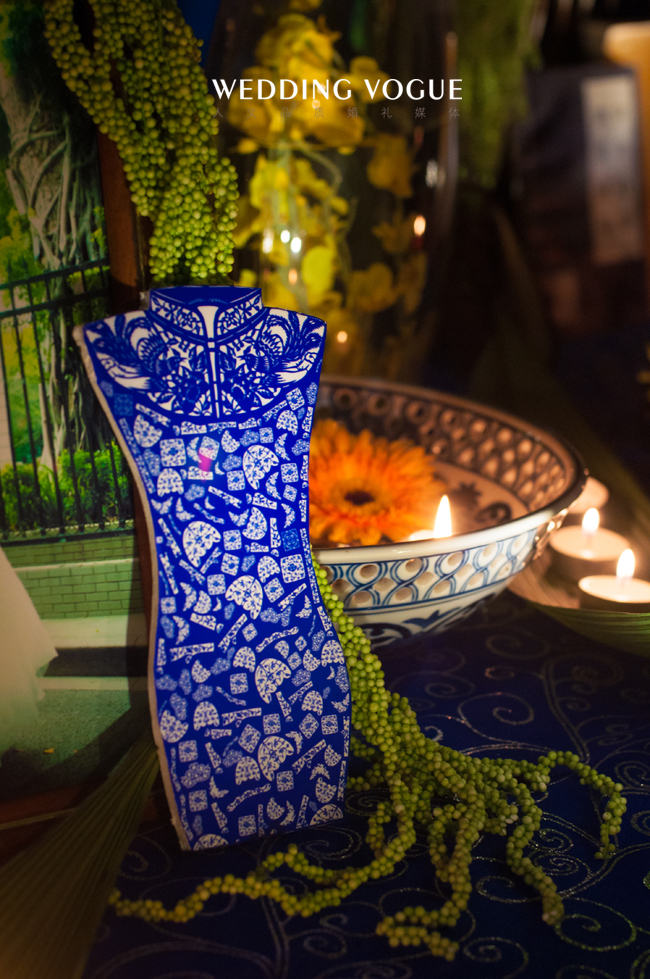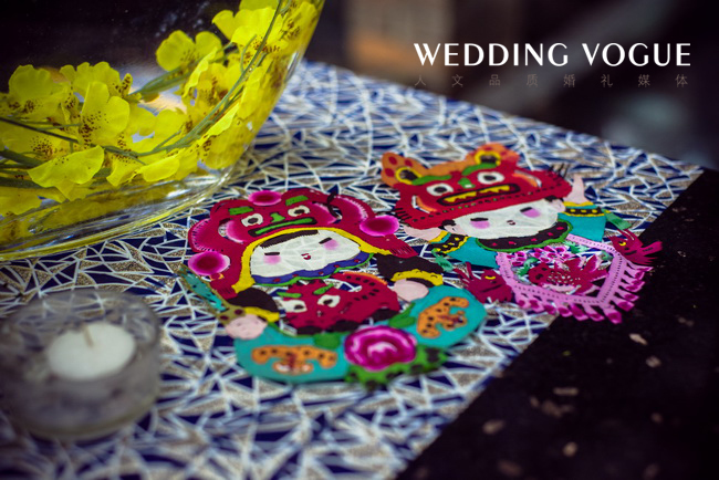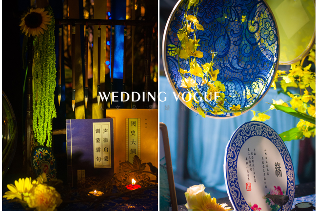 “捻花辞”寓意”两指相贴的揉捻,心底向往着阳光,一起走向柔软美好的地方。“从现场布置上,无论是缤纷的色彩还是古朴典雅的文化元素,都很好地烘托了这场韵味十足的婚礼。
