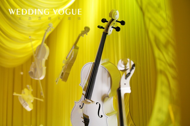 这是一场由乐器为灵感的独特婚礼,手风琴变幻成的立体舞台,苏格兰风笛里开出圣洁的花,大小提琴在空中飞舞,奏响爱的乐章,魔幻的八音盒搭建起通往幸福的路。跳跃的颜色是最欢快的节奏。无处不是惊喜,无处不是创意!