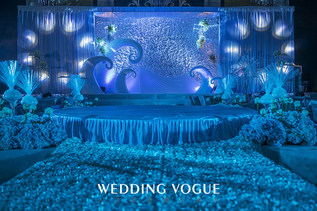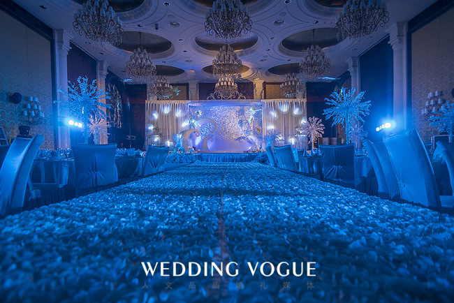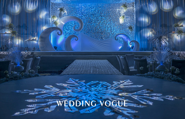 没有豪华城堡,也没有耀眼皇冠。新娘说她有一个公主变女王的梦,让她置身于梦幻,享受被幸福包围的滋味。大风吹起的雪浪,闪亮剔透的雪花,灵感来自于《冰雪奇缘》中美妙的场景,欢迎来到这个冰雪的王国。花的清香,雪的纯净,给榕城的初夏注入一股沁人心扉的冰爽,让今夜变得宁静而纯洁。