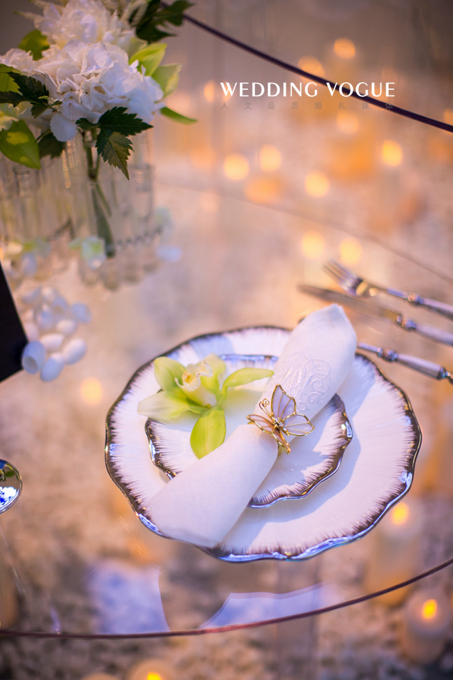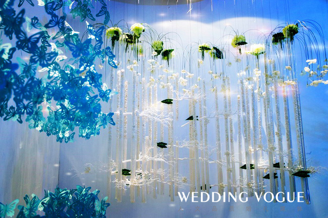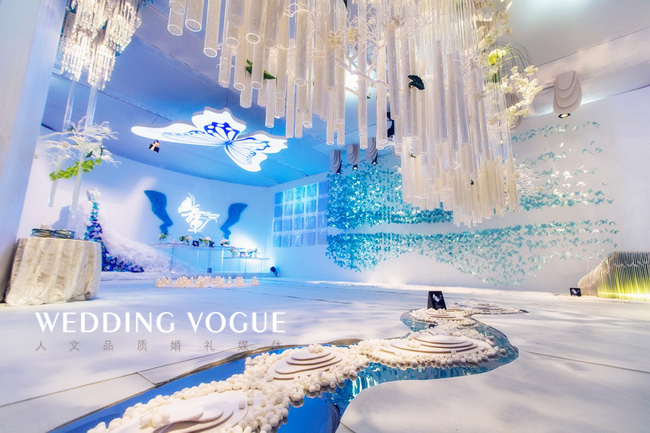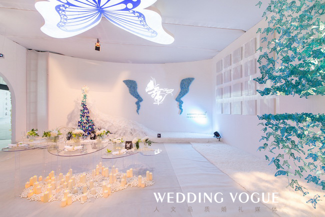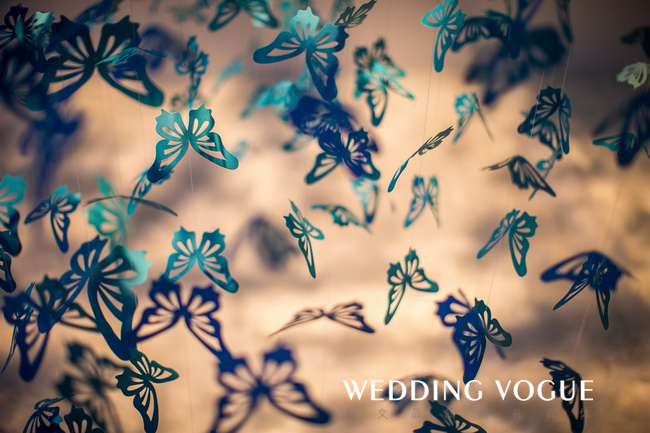 梦想,赠予现实五彩斑斓的幻想;现实,给予爱情历尽千辛的磨难;爱情,施予未来甜蜜幸福的记忆;而未来,因为有梦想而坚持不懈。当束缚的茧被冲破,刹那芳华惊艳的瞬间,翩然舞动的蓝蝶绚烂夺目,那心中的颤动,为爱飞扬!                                                                                                                 这是一套在第五届“江南烟雨”设计大赛上获奖的作品,凭借新颖灵动的设计理念和细腻唯美的布置细节,赢得了冠军宝座。