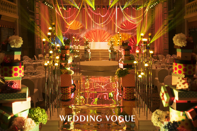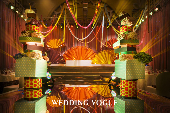 从少女时期五彩斑斓的梦到今天欢乐嘉年华的婚礼殿堂,从父母手中的呵护到爱人怀抱里的温暖。绚烂的色彩、欢快的气氛,给最爱的人一个童真的世界,永远留住这般纯美的笑颜。Love Carnival主题婚礼之夜。
