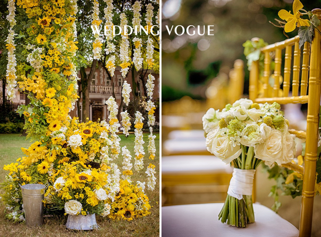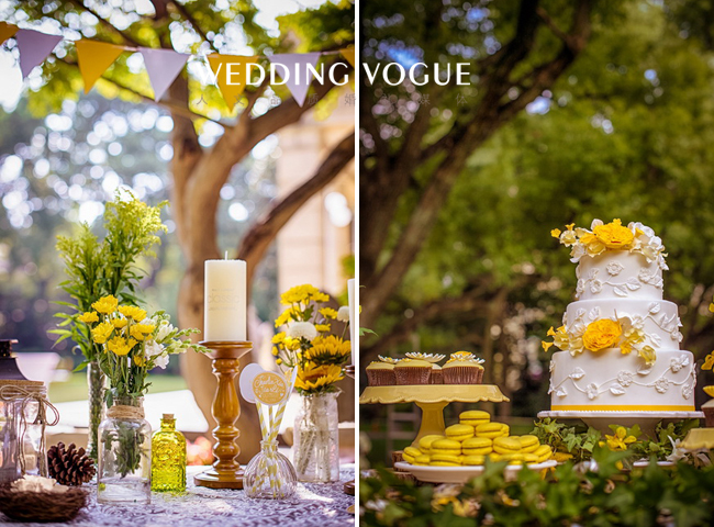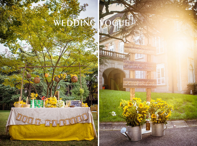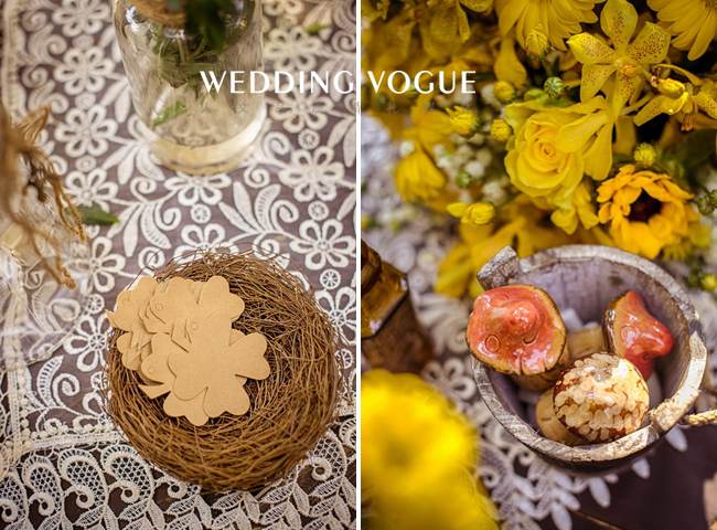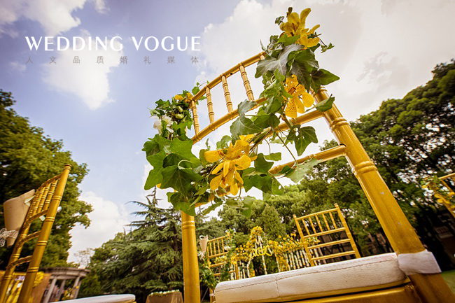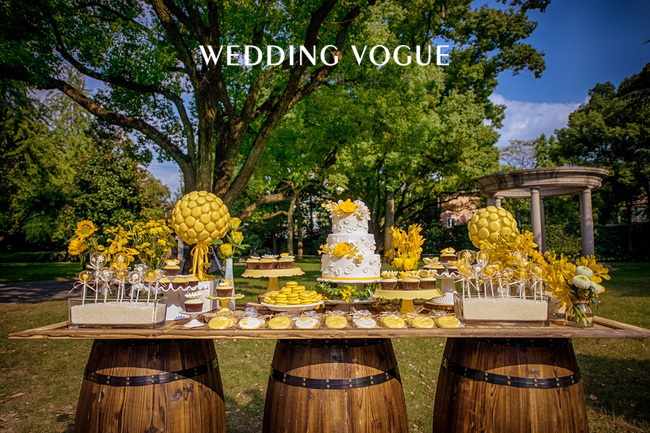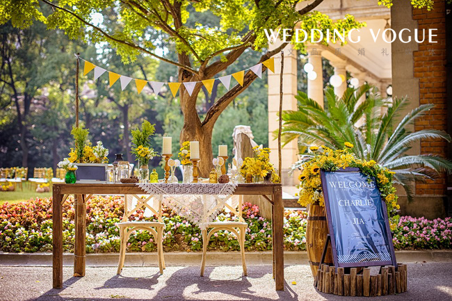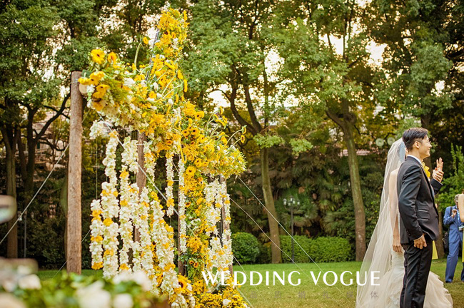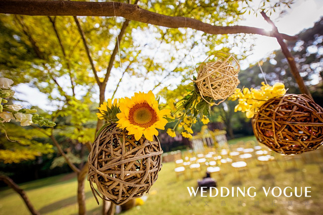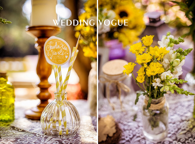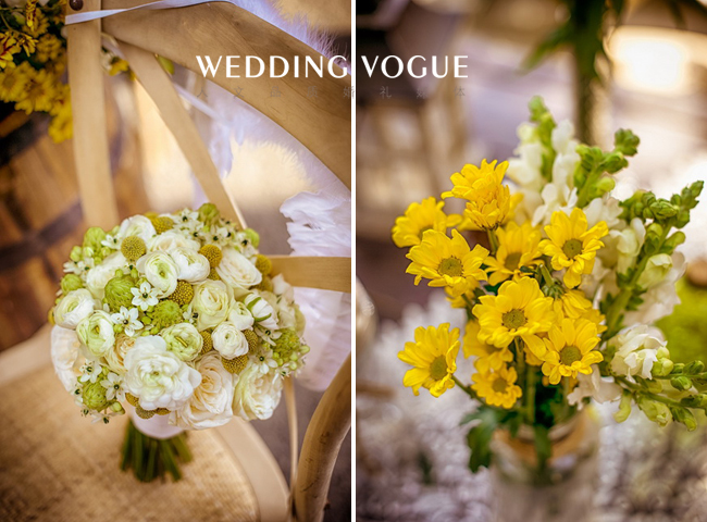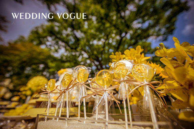 阳光般明亮的黄,搭配清新可人的绿,点缀上干净的白,一切恰到好处。一如新人的爱情,缘分天注定。