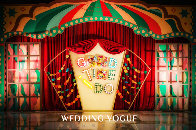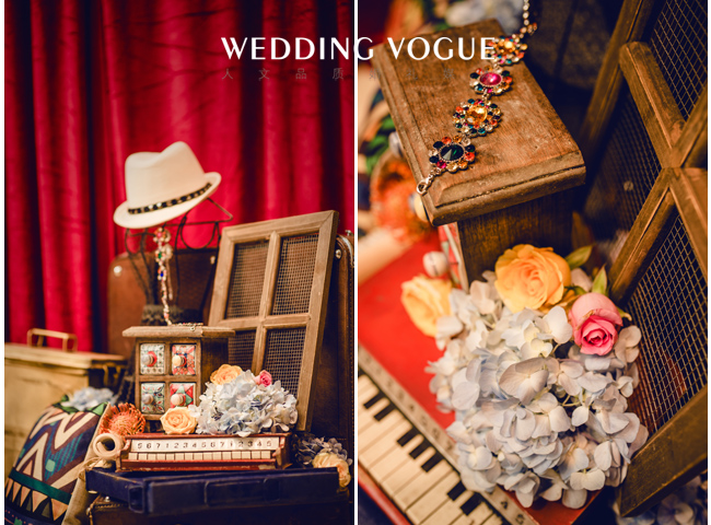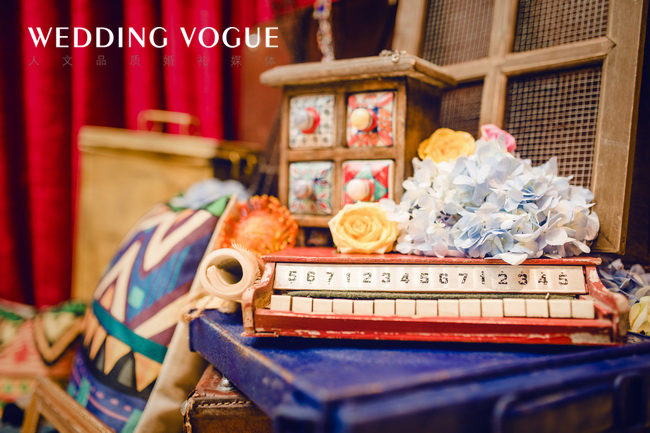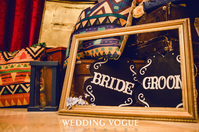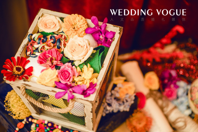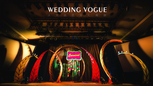这不仅是场婚礼,也是一群人的Carnival 。首先布置上就足够热闹,墨绿、亮橙、大红、嗲粉...不同色块的激情碰撞,瞬间亮瞎你的双眼。在这个盛大的狂欢中,也更多了几分混搭的随性感。铆钉爵士帽、做旧小家饰、不同名字的花卉随意堆放却错落有致。他们以各自的姿态参与其中,长长的树叶长满了灯泡,麻布几何抱枕慵懒地躺在一角...每个角落都充满着灵动,打造出一场绚彩的婚礼嘉年华。