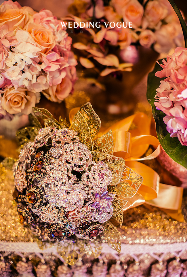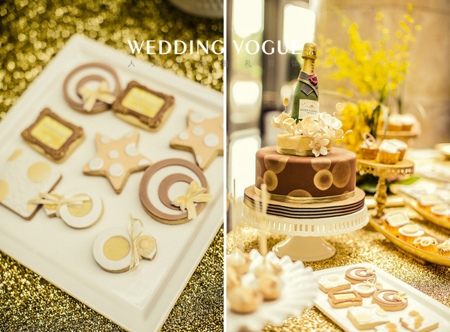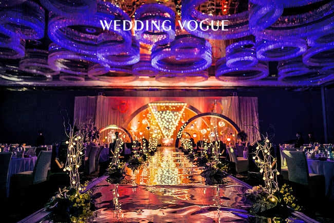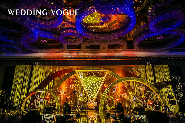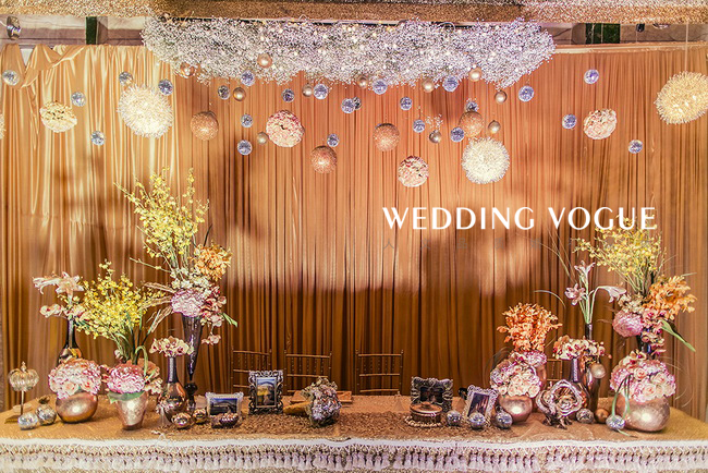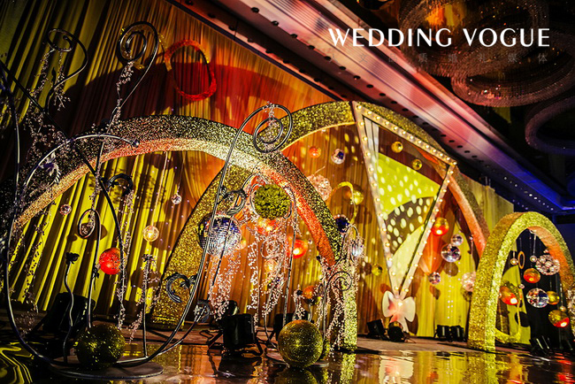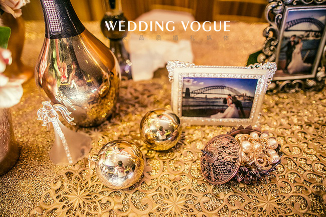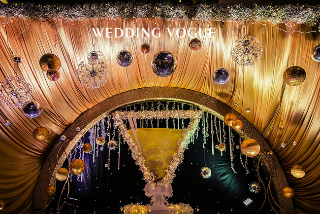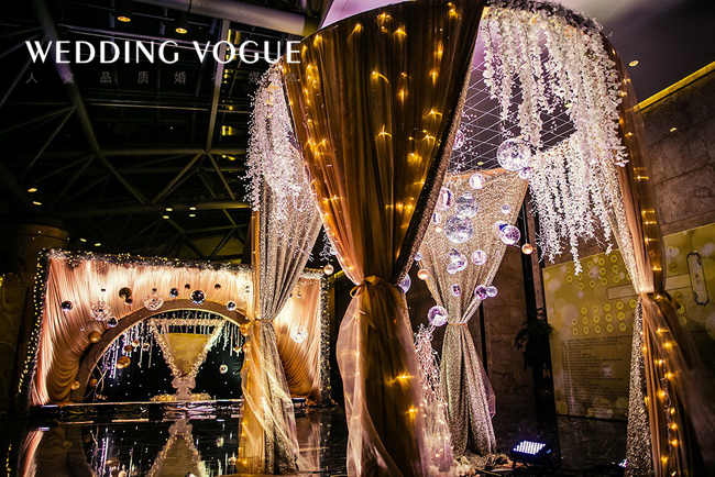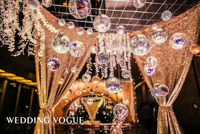 香槟代表了美好、浪漫、欢乐,源远流长,这些寓意恰与婚礼的特点一致,交织着婚礼的喜庆,富丽堂皇却又显出低调的奢华。香槟咕嘟咕嘟的气泡,仿佛是新郎新娘爱情的回忆。而酒店中的圆形水晶灯也与香槟的主题交相辉映,策划师的水晶球装饰更是锦上添花。这场婚礼不仅实现了新娘盖茨比的梦,更预示着新人如同香槟一般甜美又回味悠长的未来。
