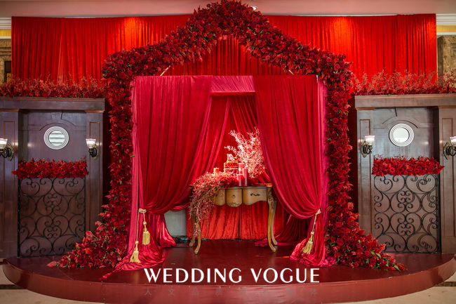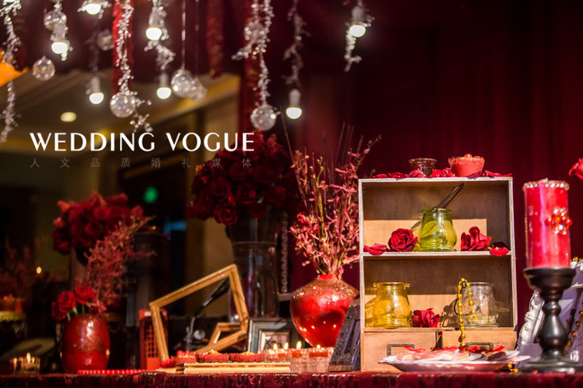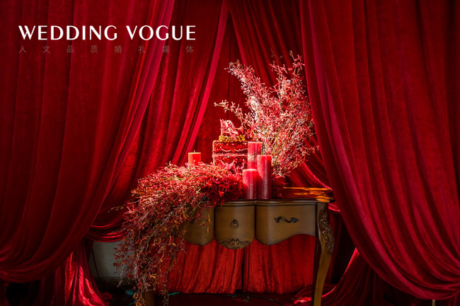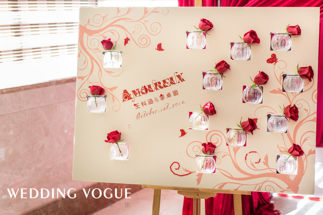 Amoureux是法语热恋的意思,采用欧式红的色调,特别定制了法式壁炉融入迎宾区,使婚礼别具一格。