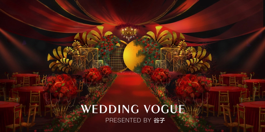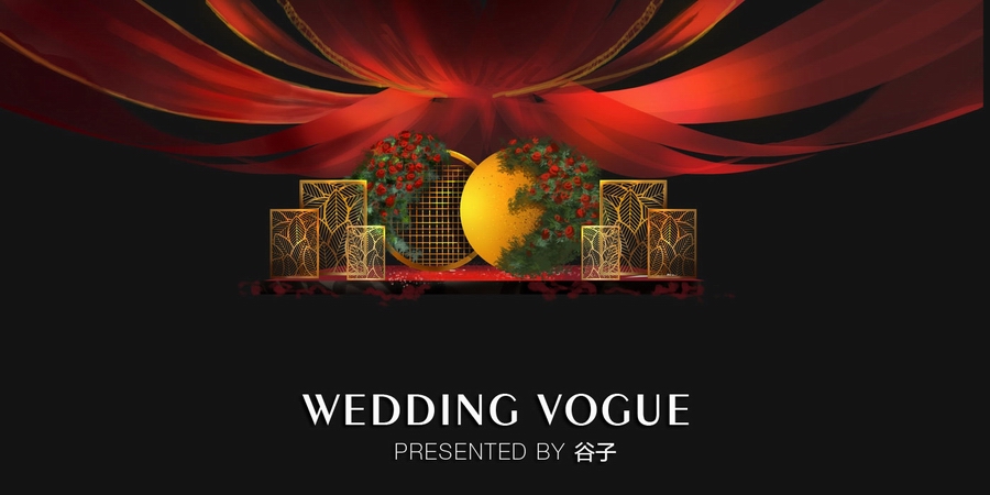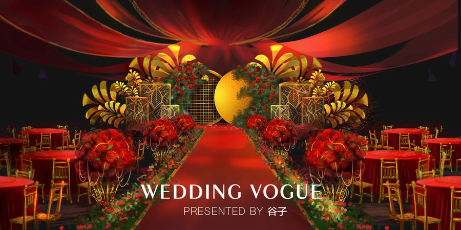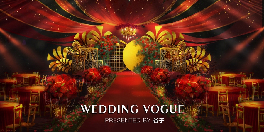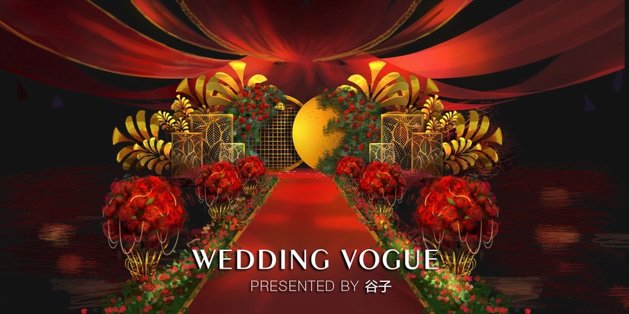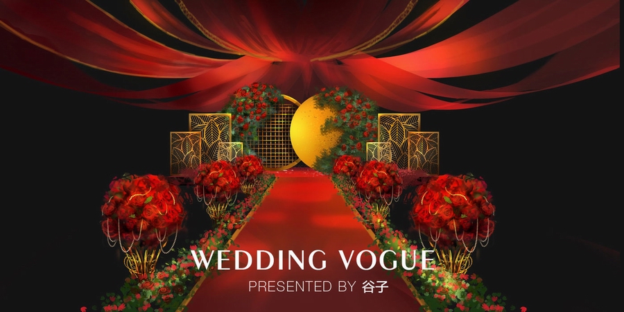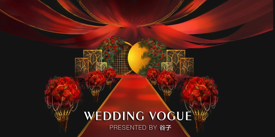红金婚礼手绘