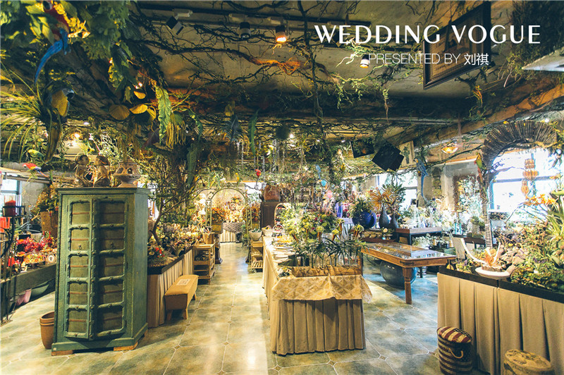 当宾客走进这红砖绿瓦所筑造的小楼里,循着楼梯向上便到了这次酒会的目的地——吾木沉香,一间由花海组成的秘密仙境,是由刘祺八年前主持婚礼的新人晓华女士提供的场地,与“花食间”主题不谋而合。