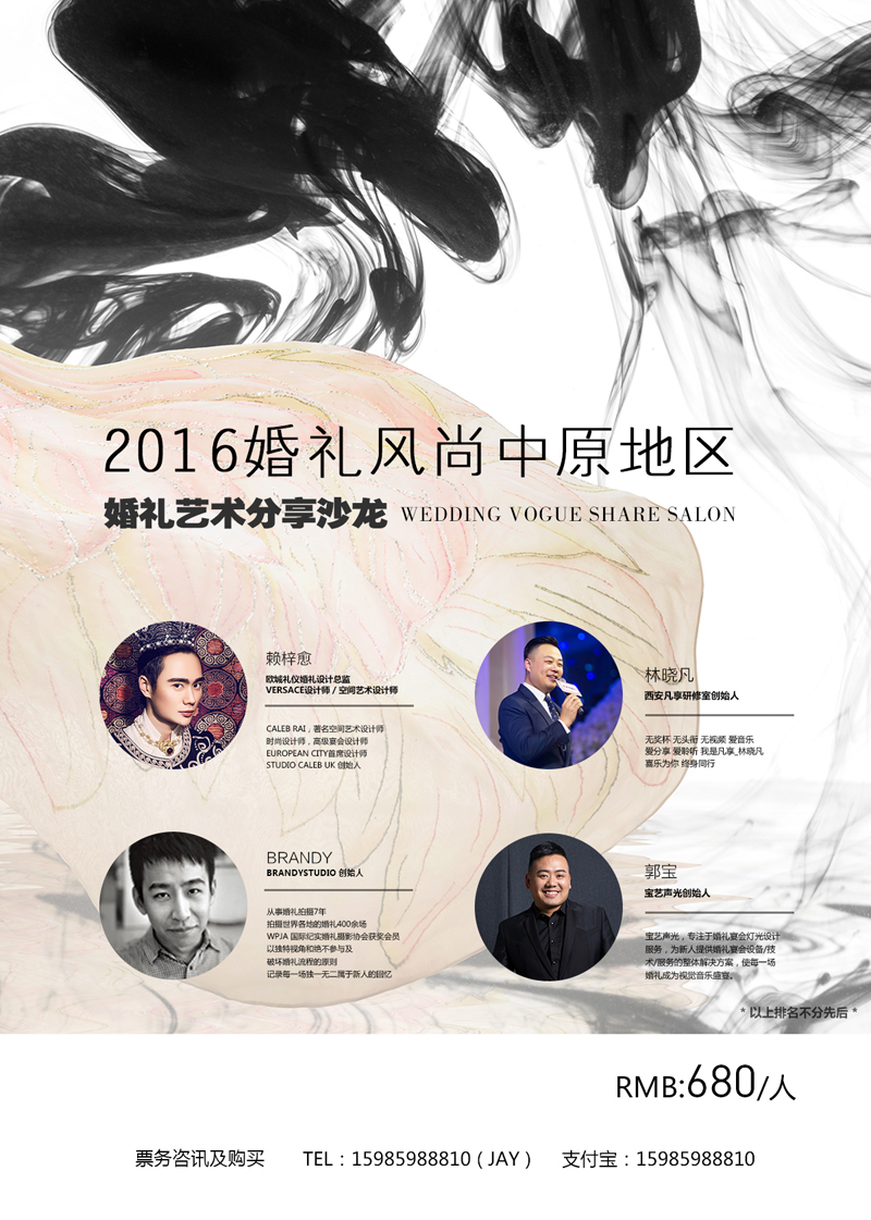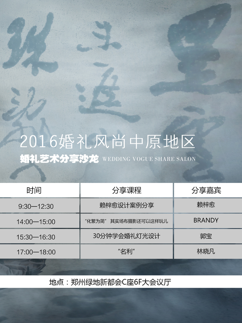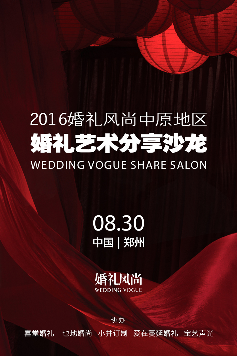 2016婚礼风尚中原地区婚礼艺术分享沙龙,8月30日 郑州见!