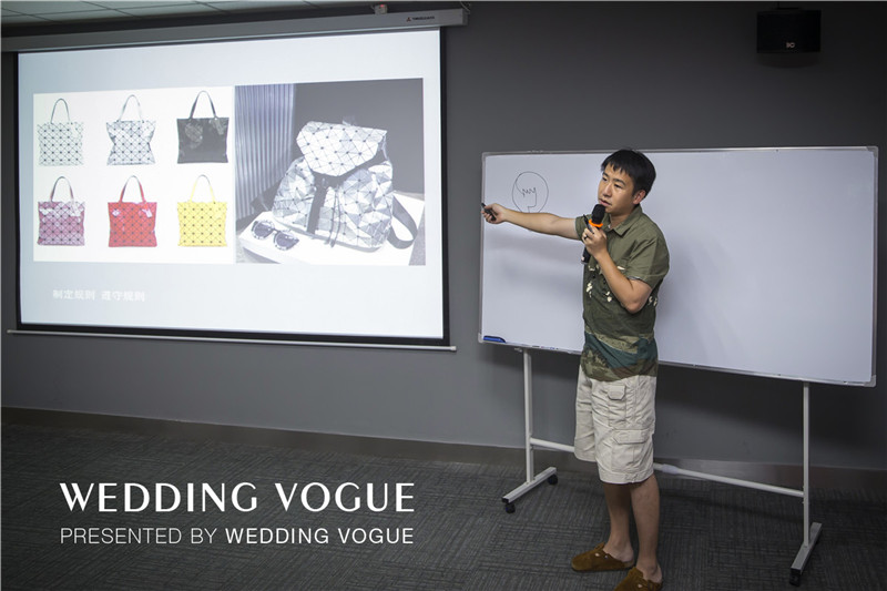 他通过具体案例向学员解说展示场布摄影与商业设计的相同之处:好的商业设计,不是把无数的创意体现出来,而是把有限的元素发挥出无限的创意。场布摄影也可以站在多个角度去思考问题,摆在眼前的事物是不变的,但是尝试不同的拍摄角度可能会带来不一样的结果。当入迷途的时候,可以试着抛开事物表面,从事物组成元素角度考虑,也许会带来不一样的效果。