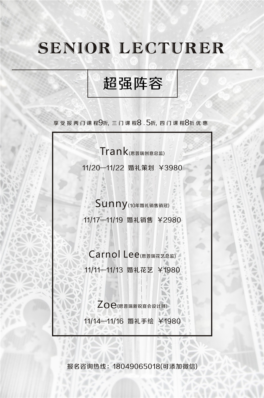 (以上费用内容包含:3天婚礼课程分享,学员作品分析与点评。)