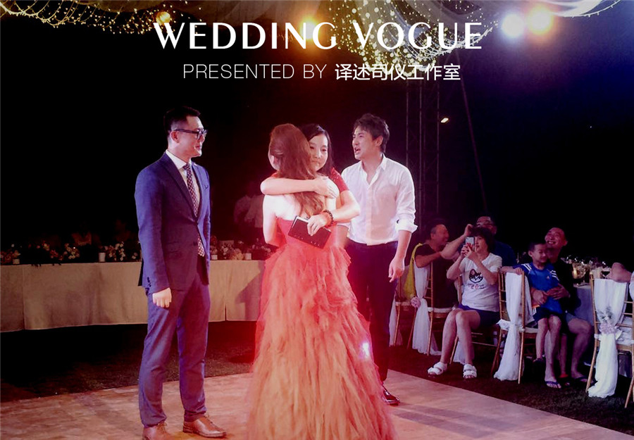 “两位主持人好,辛苦了,婚礼拜托了。”
