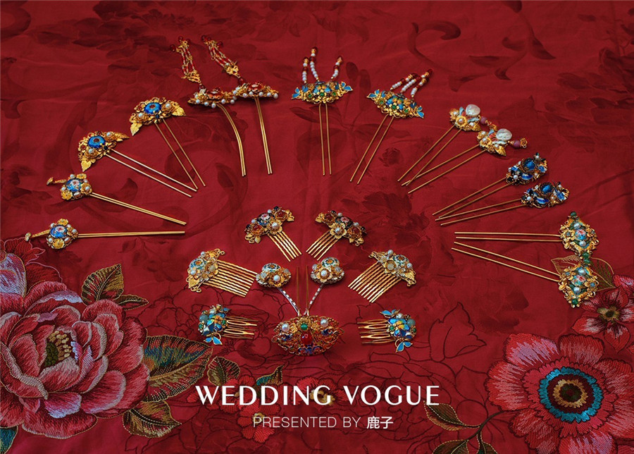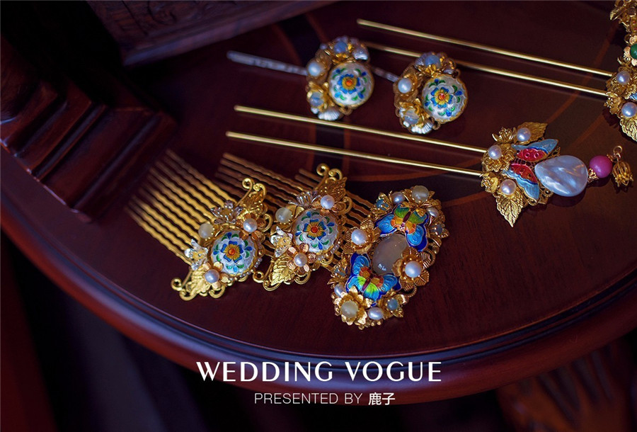 每个时代都有它的美,婉转庭院间,女人们环佩叮当穿行期间,头饰"步摇" ,真是一道道美丽又形象的风景;景泰蓝头饰亦更像是长辈们如家传之宝般在婚前前夜给予新娘最珍贵的祝福。