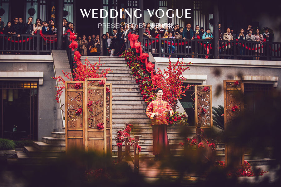 整场婚礼秀从形式、内容、情感三个方面逐层递进表演。将传统婚礼与西式婚礼相结合,从传统迎亲到婚礼大典仪式,布置上也以徜徉着因地制宜的雅致古典之美。而从情感上来看,从迎娶初时到婚典礼成,无疑可视为一种情感的升华。婚礼秀最后的VERA WANG婚纱走秀,展现了更具现代化的婚礼风尚主张,为整场婚礼秀优雅收场。
