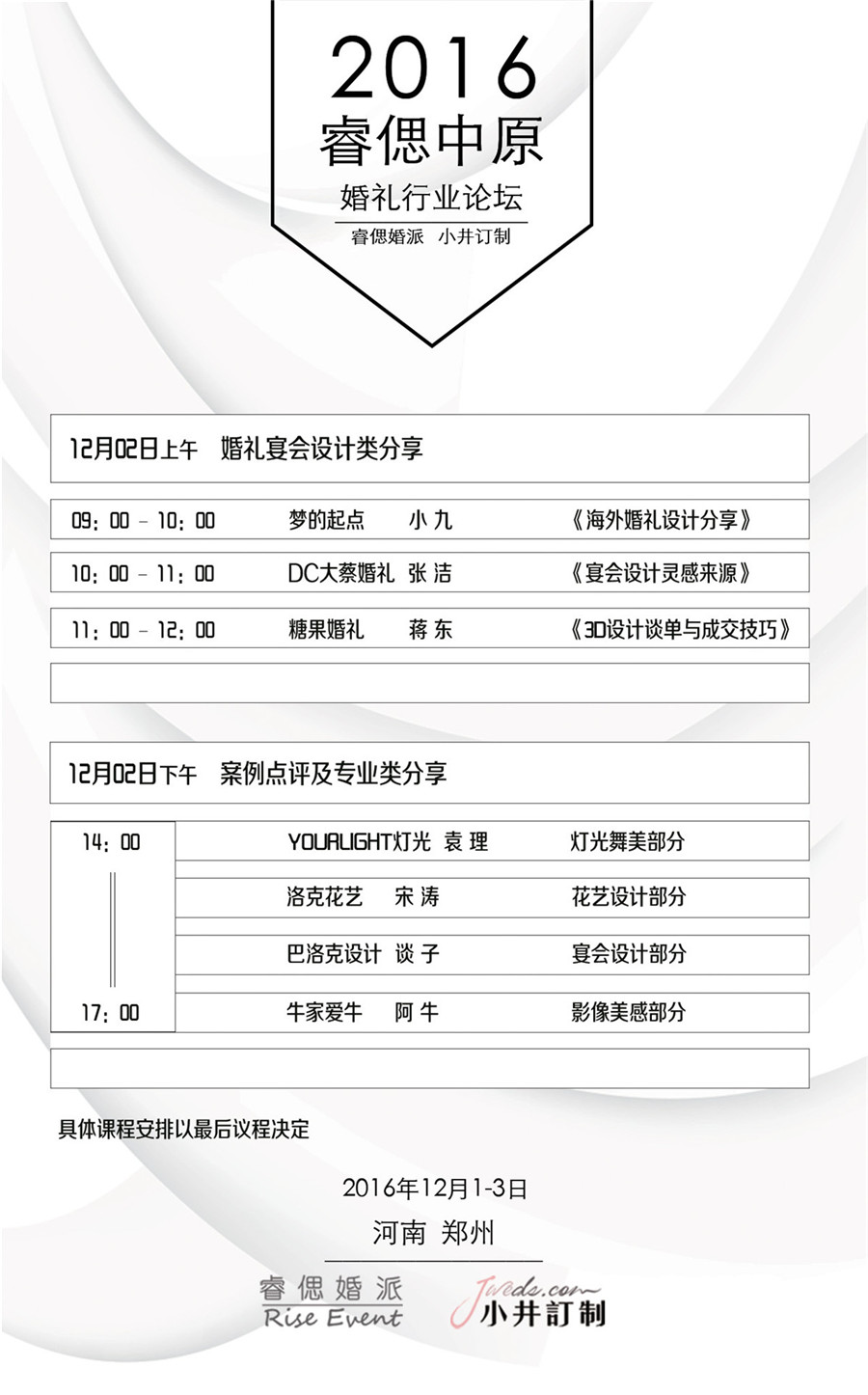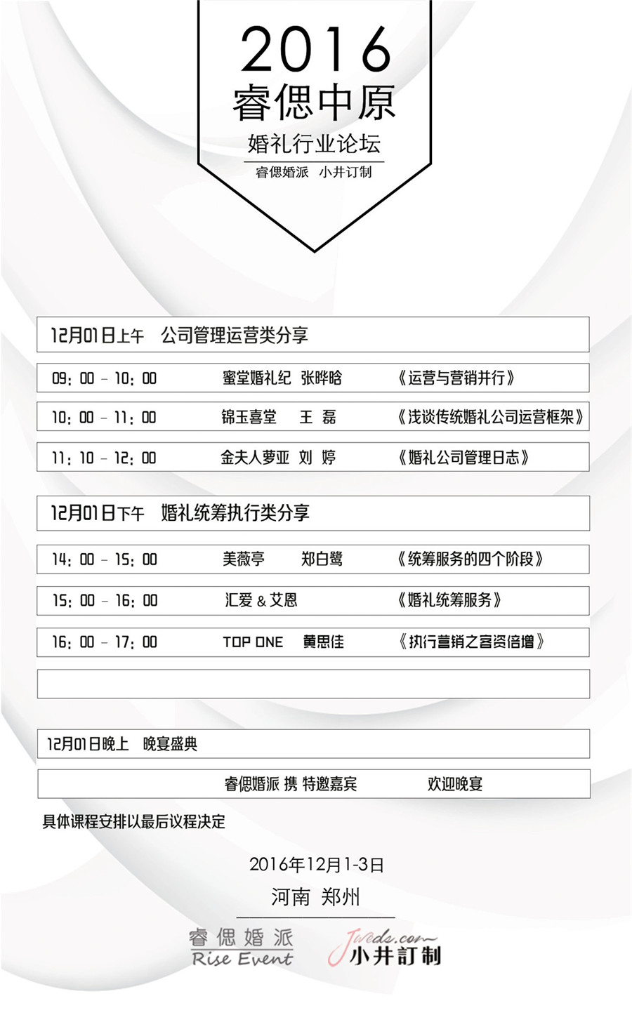 2016年睿偲中原婚礼行业论坛 | 12月1日,再度起航!