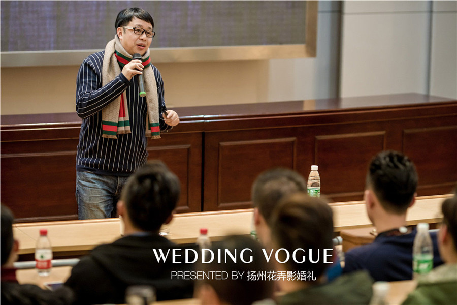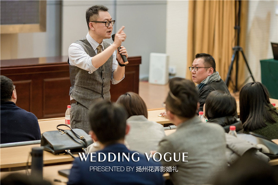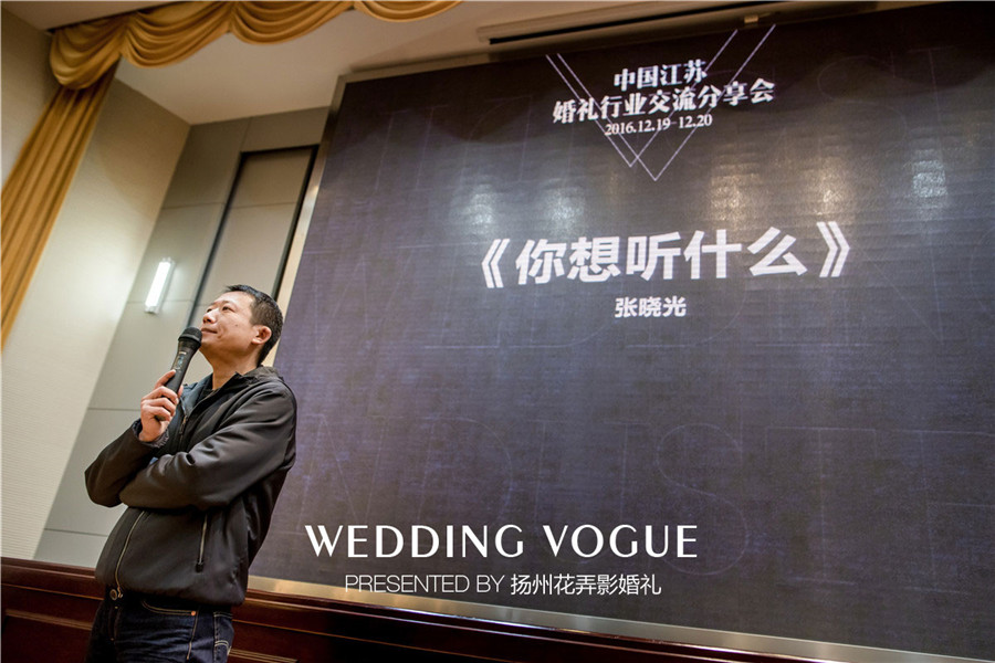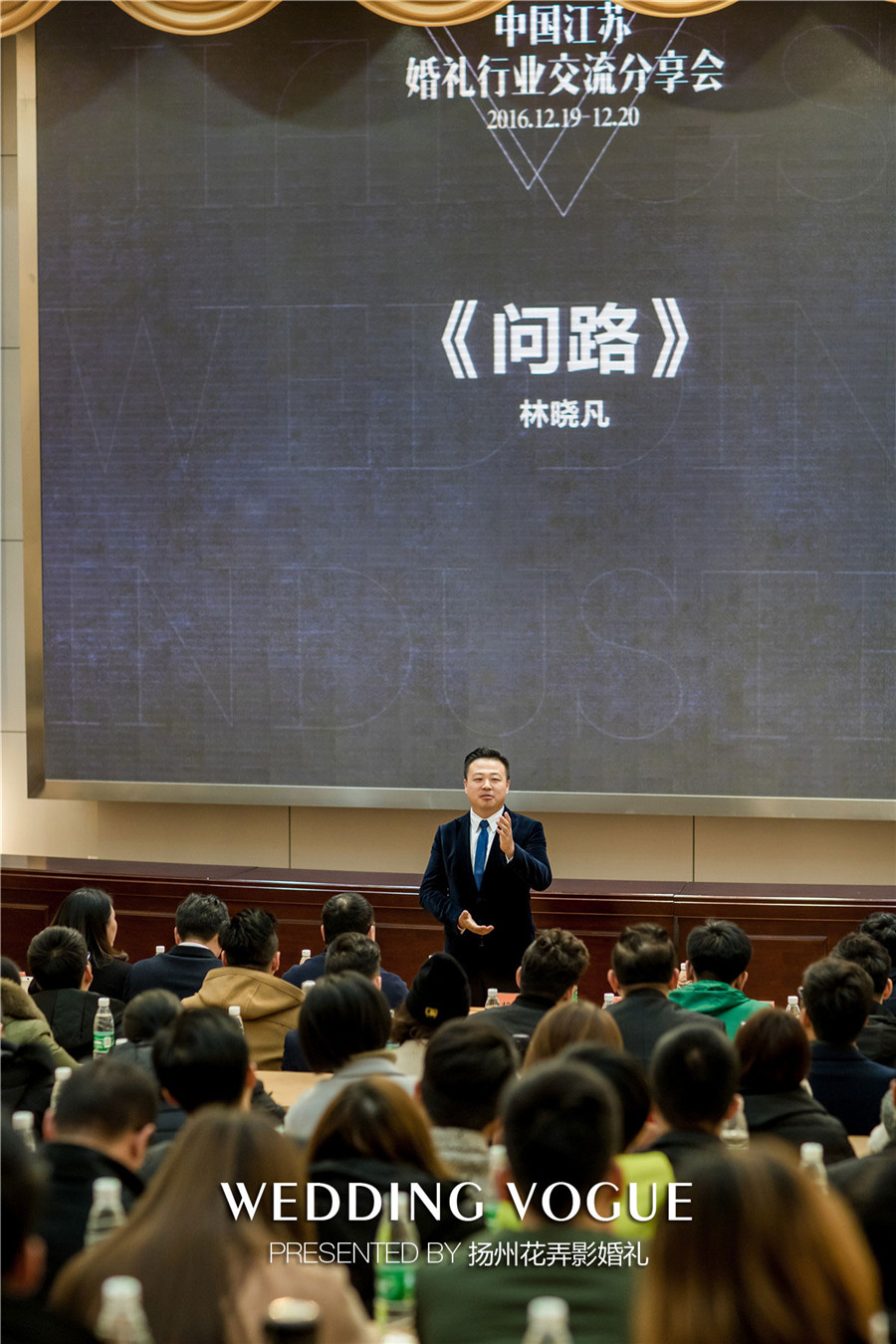 随着活动主持吉泽的开场,第一场林晓凡老师的分享课正式开始。一如既往的延续了晓凡老师之前直接、干脆的命题风格,继“涨价”、“名利”等课程分享之后,此次活动晓凡老师以《问路》为主题,向参加活动的学员和婚礼人,讲述了自己5年从业经历。因地制宜,课程从一段对扬州淮扬菜介绍的视频的开始,通过视频引出“婚礼是谈情说爱的年夜饭”的观点,表达了对婚礼人的道路应该如何走的一些感悟。他相信中国婚礼人未来的康庄大道一定是在所有婚礼人行走间形成。