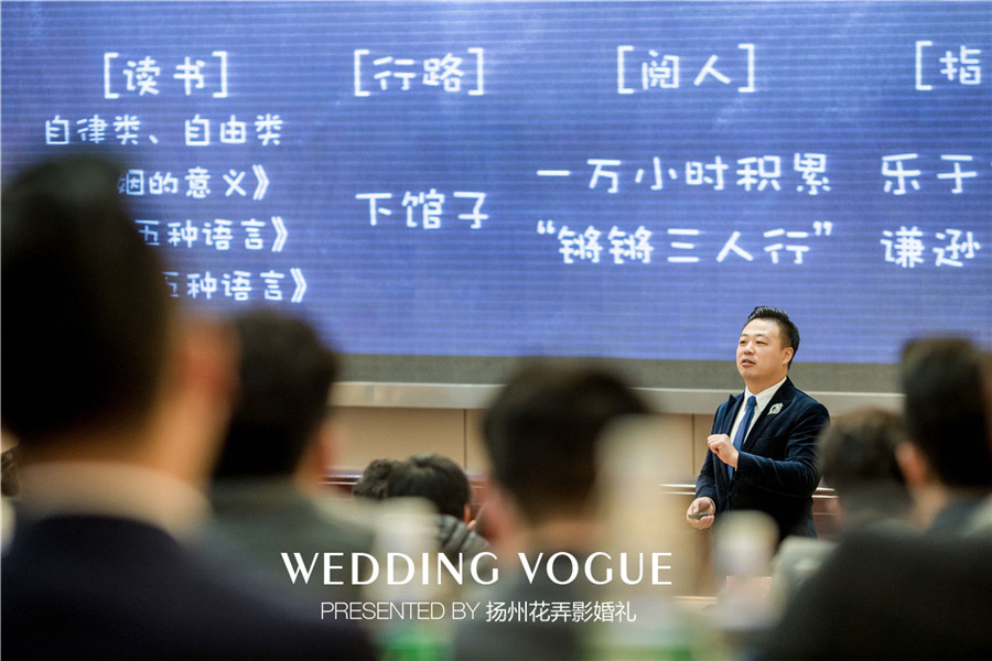 南京皇家婚礼顾问中心创始人皇甫燎原先生发言表示,自己很庆幸做了扬州花弄影婚礼和婚礼风尚的牵线人,让这两优秀的团队创造了意义非凡的分享会。