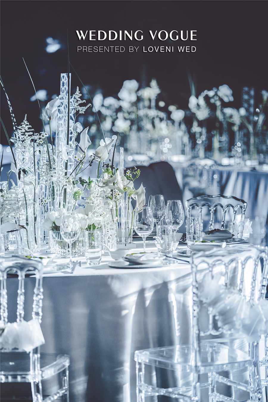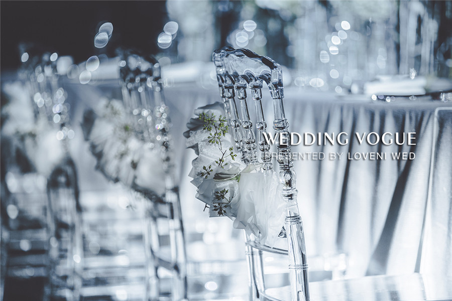 整体空间设计上,摒弃以往婚礼中常见的斑斓彩色,以白色为主基调,少许绿植作点缀,隐隐透着春天的气息里,干净而纯粹的空间给予视野无限的放空与遐想。