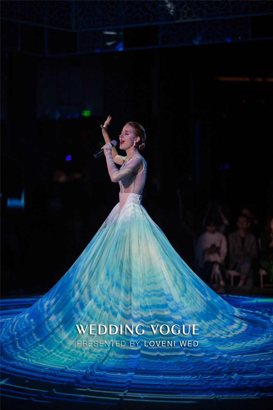 还记得早前詹妮弗·洛佩兹在《美国偶像》上,一袭白裙献唱《Feel the light》,现场利用3D投影技术,将五彩灯光打照在为她专门定制的巨型白裙上,如梦似幻,堪称美偶史上最美表演。在此次春尚发布现场,伴随着同样的音乐,重新演绎了梦幻的舞台!