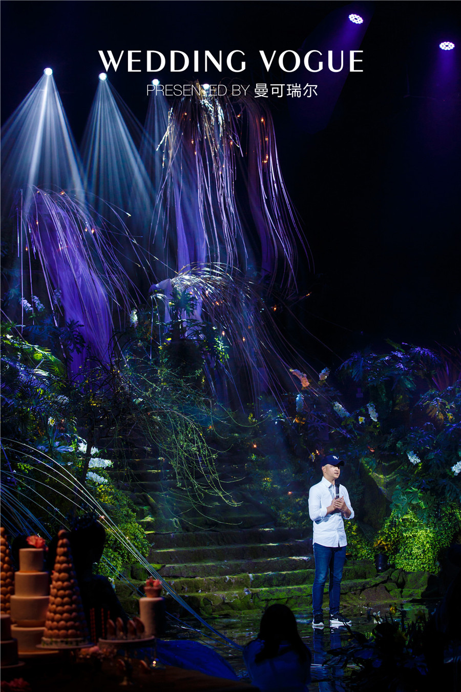 此次婚礼秀的室内发布在酒店的长岛宴会厅,该宴会厅面积极广,单单只是搭建就用了3天3夜。曼可瑞尔的创始人付强,在每一次的婚礼搭建现场,他都会亲临。