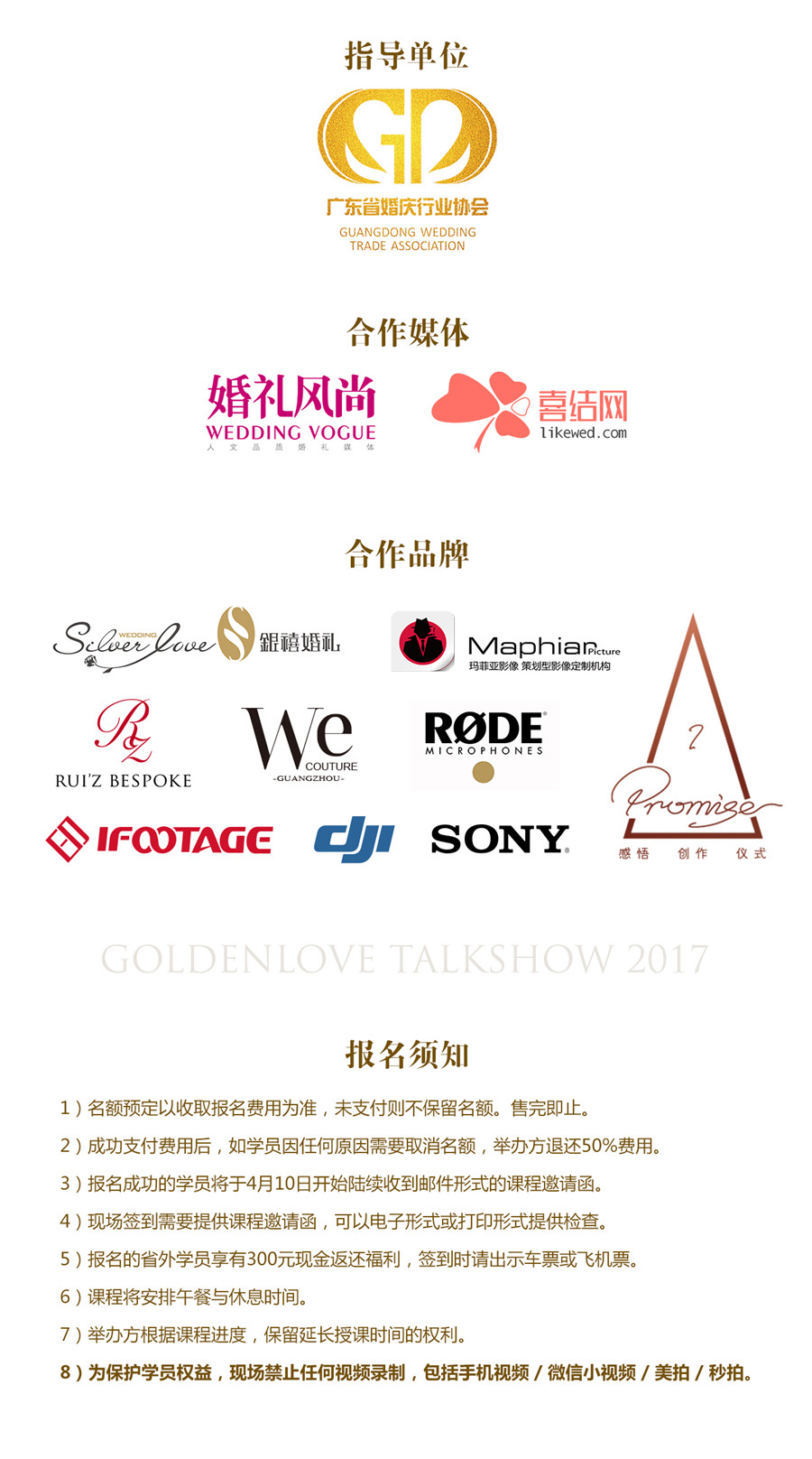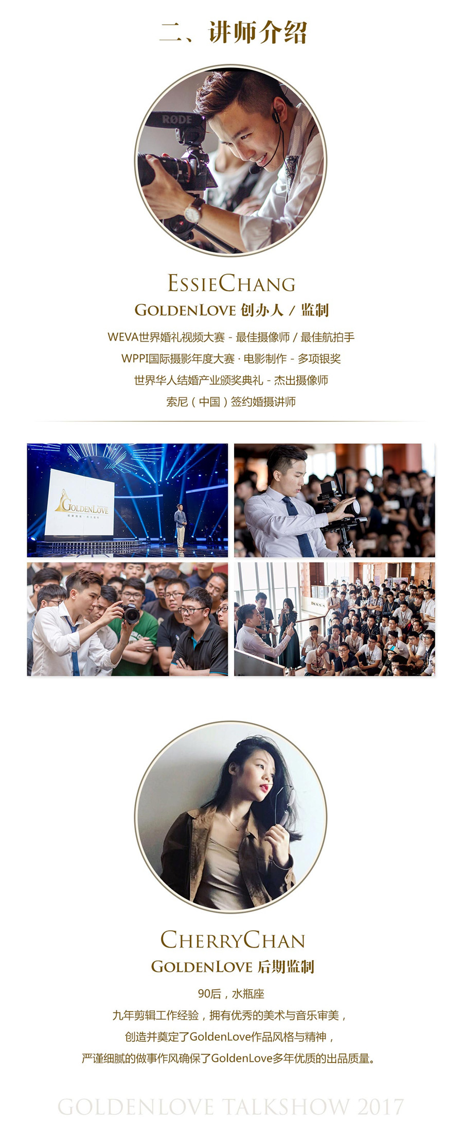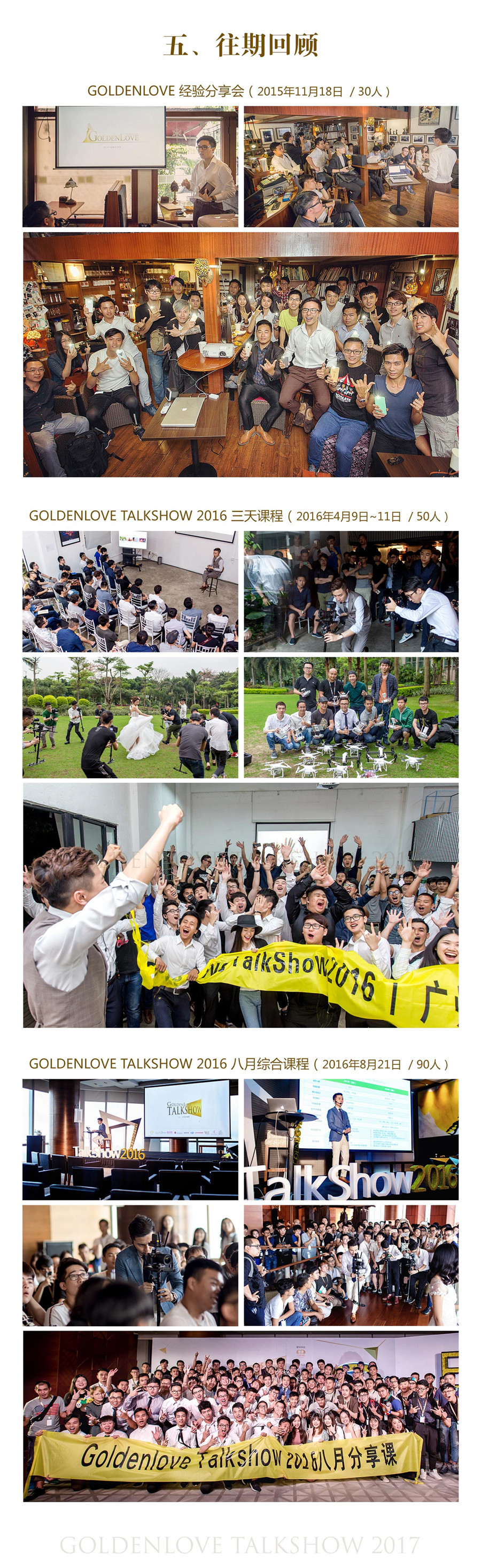 GoldenLove Talkshow 2017 四月课程 · 正式开放报名!课程内容有前期拍摄、器材经验、销售推广及后期剪辑,八大场景实战拍摄训练,6部国际大奖案例制作思路与成片关键等等!干货满满!等你来战!