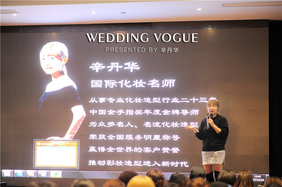 辛丹华从业24年,不仅对化妆造型行业的变迁如数家珍,对当今最新的潮流趋势也是了如指掌。在没有“新娘跟妆师”概念的时代,一个人服务新娘,到如今经营日趋成熟、产业涵盖培训、美容、美体、美甲、美睫等项目的“彩妆秀” 品牌,中间这段时间跨度为20多年的心路历程,辛丹华都倾囊相授,用她自己的话说,希望结束后大家都是感觉到这个下午是真的学到了东西,是有用的。