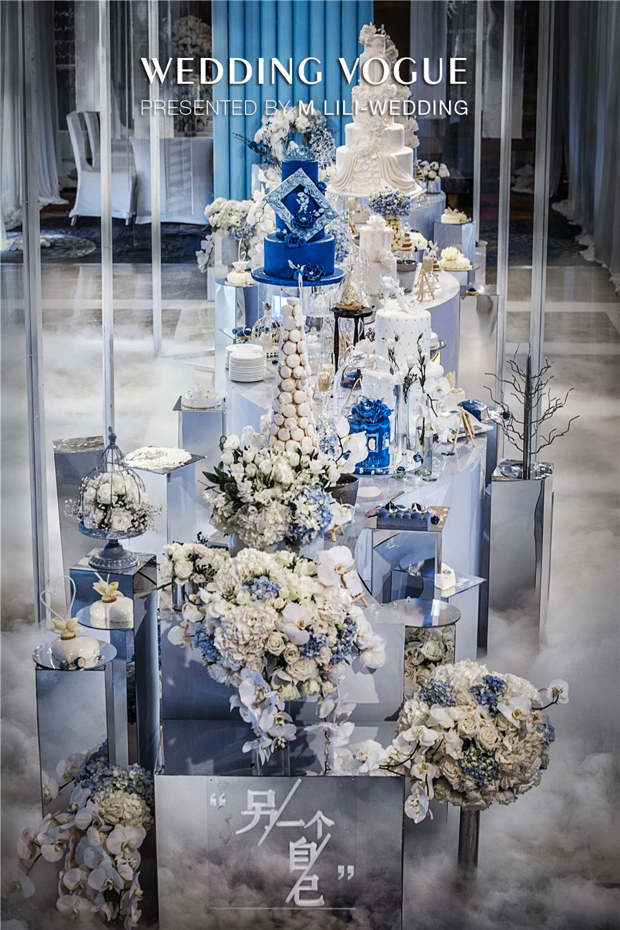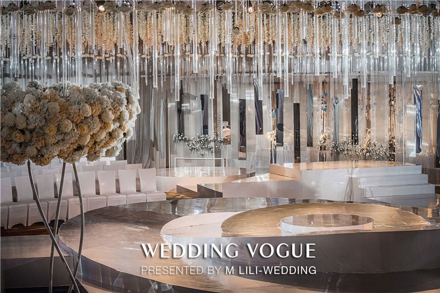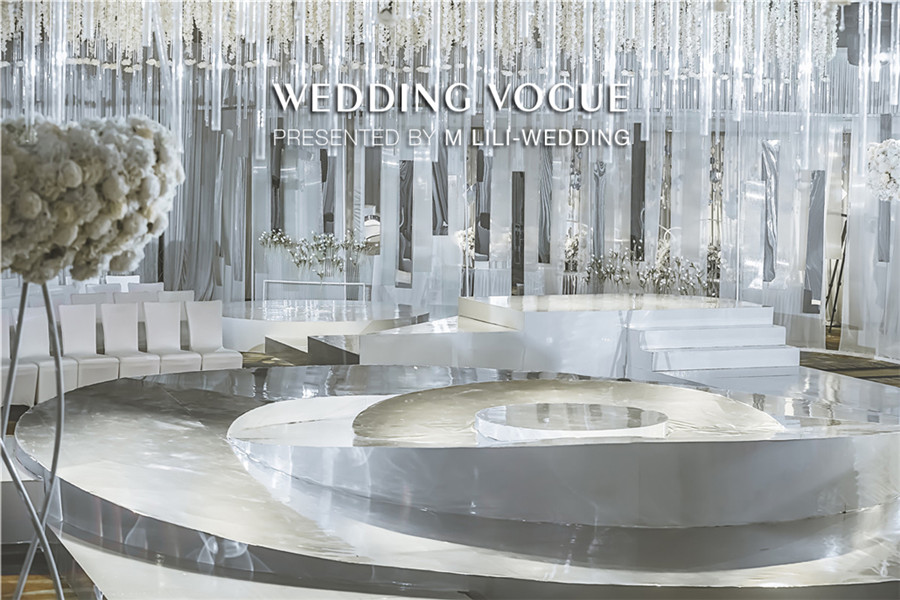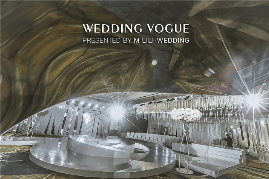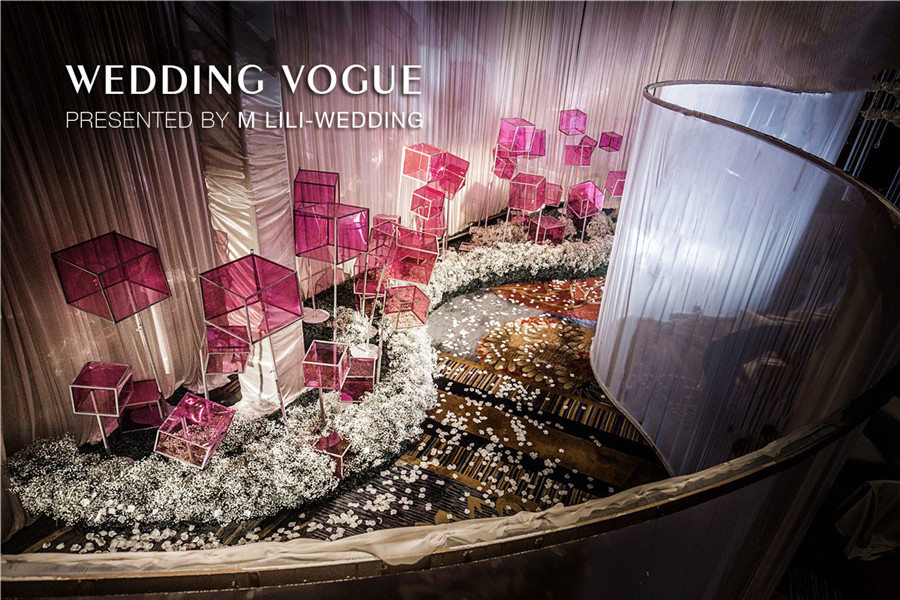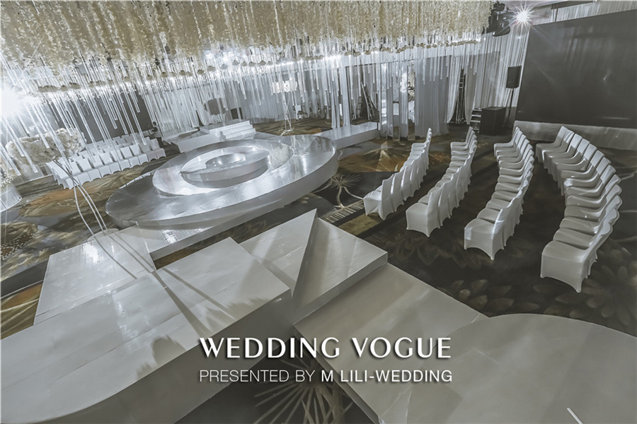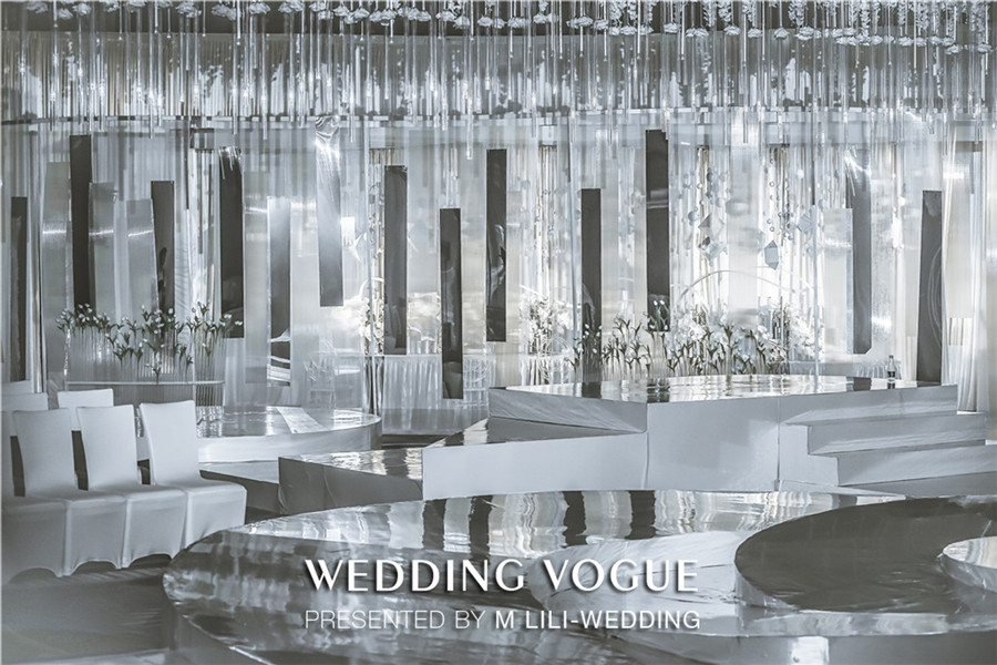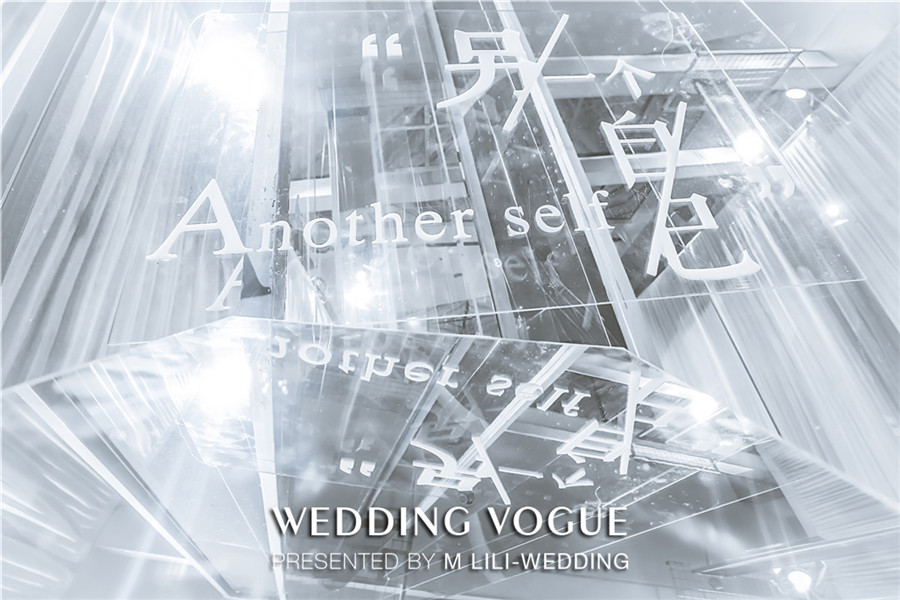 在空间设计上,MLILI婚礼策划采用空间上的对称美,把宴会厅的主题划分为上与下,左与右,前与后,仿若映照出“另一个自己”。