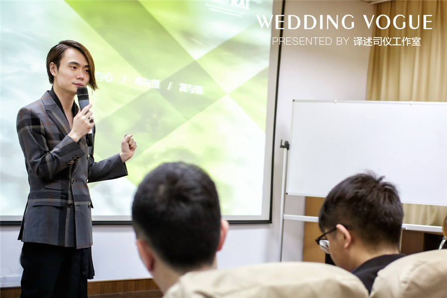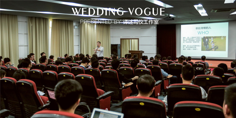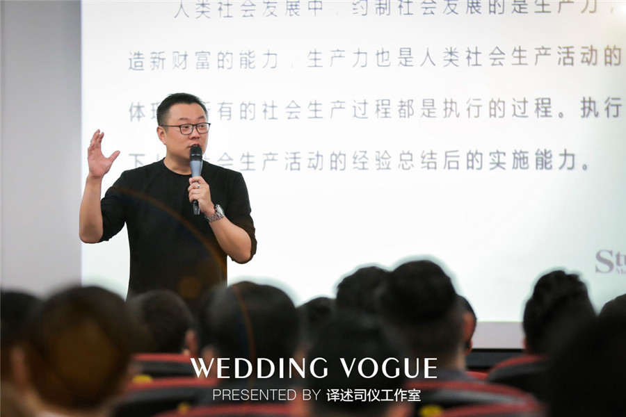 本次课程分为AB两组,A组是专门针对主持人的课程,由上海主持大咖王瑱、邵晨东主讲。B组针对的是策划师,特别邀请婚礼行业知名的宴会设计师赖梓愈和蔡上进行分享。活动第一天的课程是AB组通用的大课,上午的课程由王瑱主讲《婚礼商业洞察》,开拓思维方式,从不同的角度认识世界的本质。下午由Vincent Goo主讲互联网时代的营销以及新媒体运营。