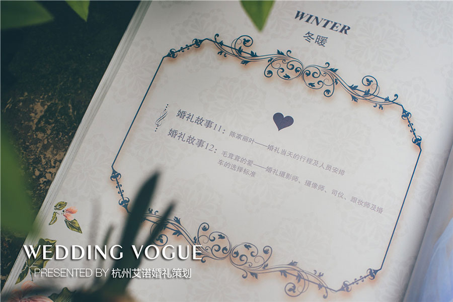 书中以经典的12个新人故事为出发点,更是以“春情”、“夏恋”、“秋实”、“冬暖”四季作为划分章节,向大家娓娓道来关于婚礼的12个迷思,涉及婚礼筹备内容、婚礼设计及具体操作、沟通与信任、婚礼服务以及收费等等大小事项,对读者颇为受用。