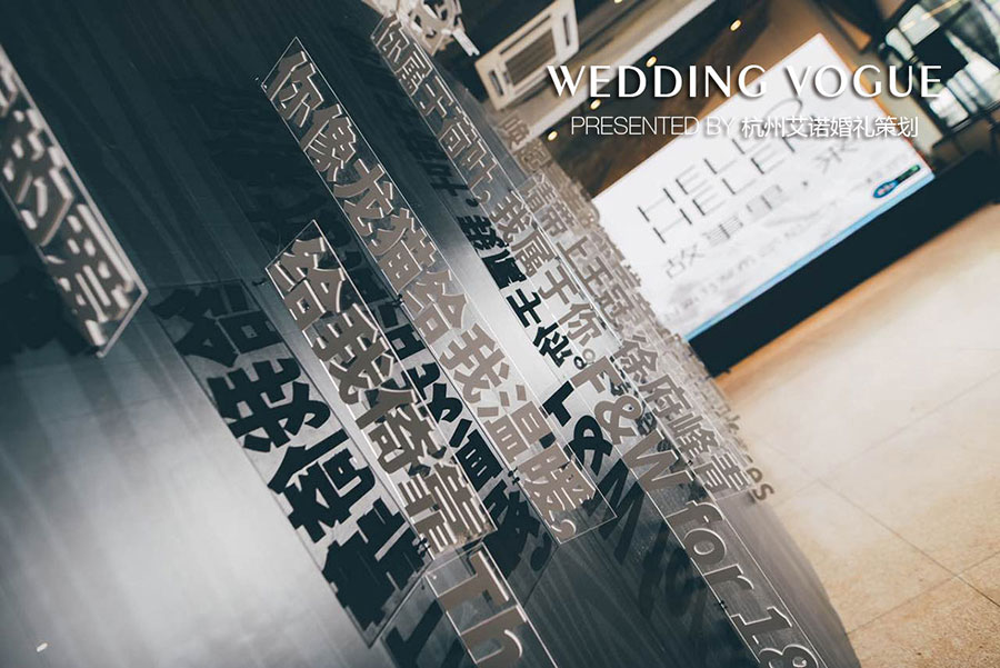 在发布会的主体特意设计了“S”形的背板,整体造型犹如一本打开立起来的书本,在书本上更是镶嵌立体PVC字,而上面的动人语句恰恰都是Helen与新人之间点滴回忆。