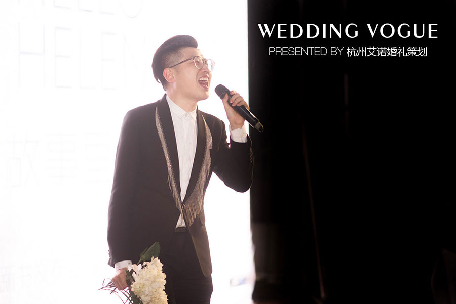 视频播放完毕,主持人孙磊首先上台感谢大家到来,他坦言,Helen的采访视频在看过很多遍之后依然让他感概,相信Helen的正能量必定能感染大家,也能让婚礼人有着不一样的感触。