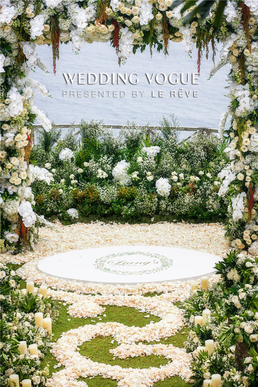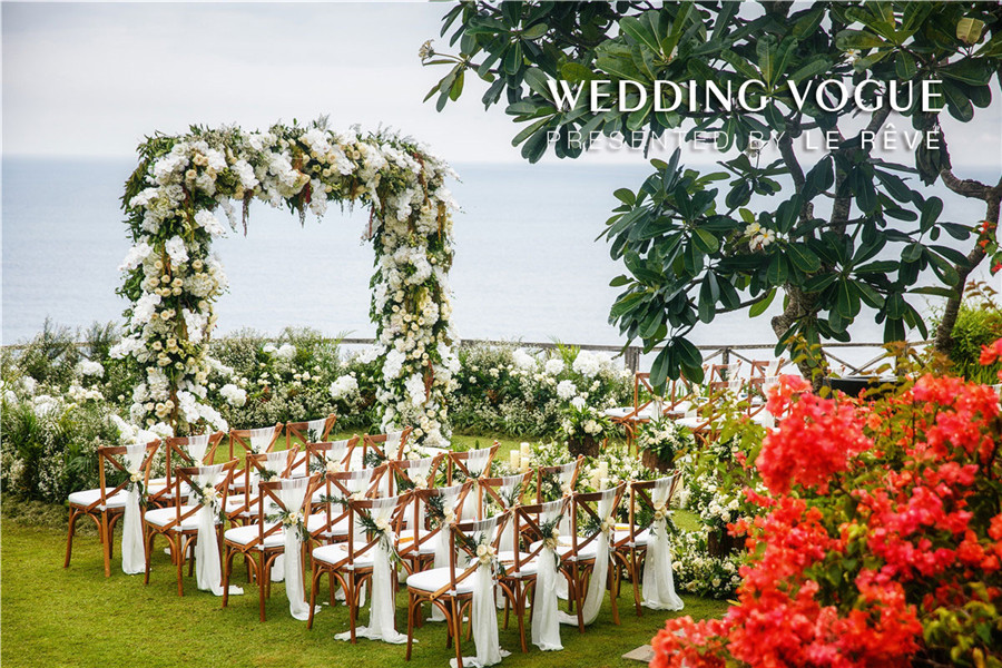 高高的悬崖之上,无垠的蓝色块与绿色块之间,我们选择了简单的白色。让户外婚礼多了教堂般的神圣与庄严,却又不失灵动之气。