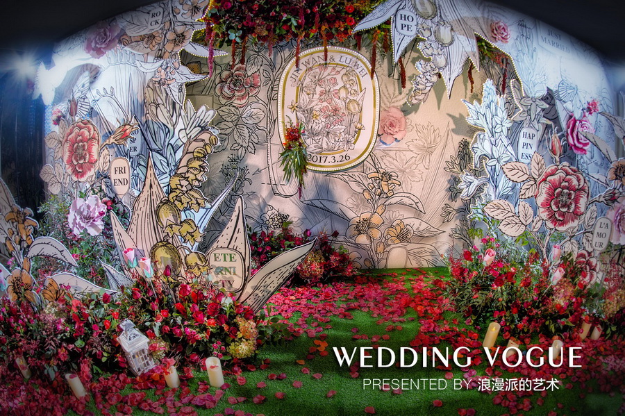 新人的美好情怀与遐思,全都寄托在这座隐秘花园里。无论是各类植物元素勾勒出的现场,还是别具匠心的迎宾区暗语,都仿佛诉说着一个真理:爱情,就是会彼此多“花”一份心意。