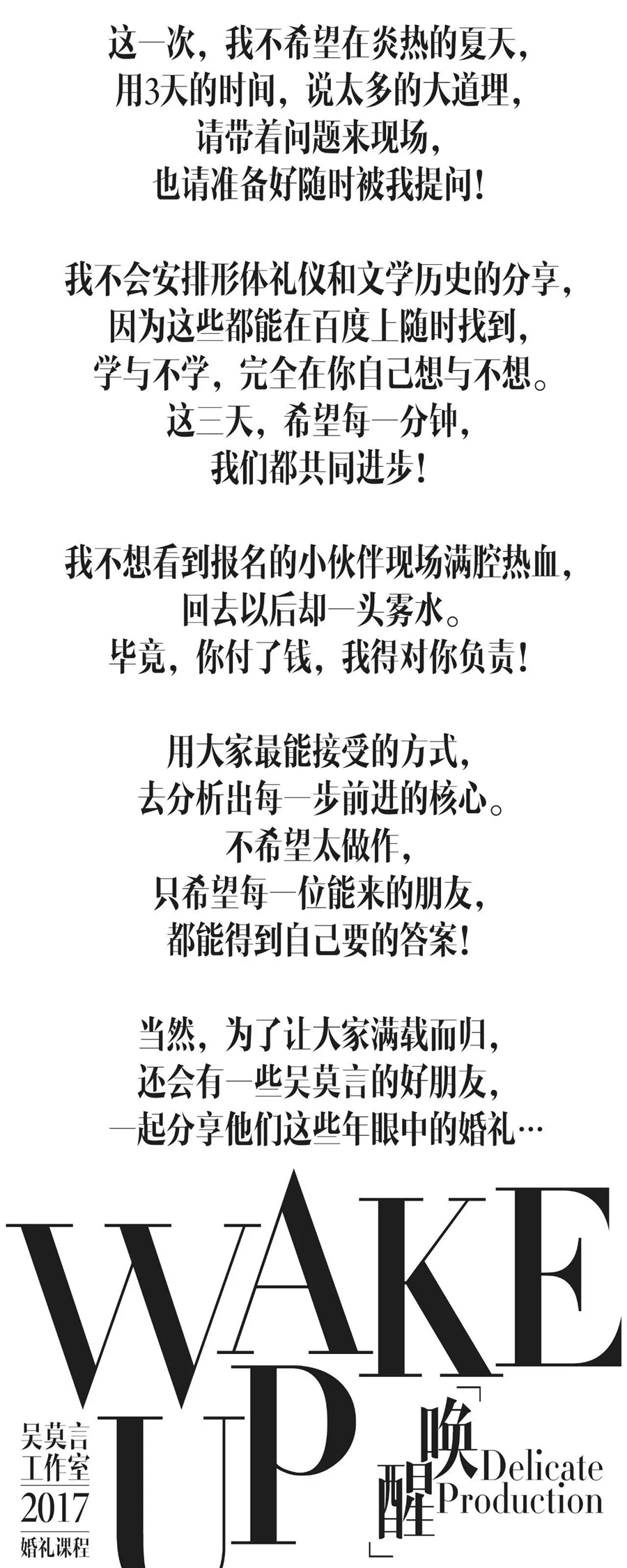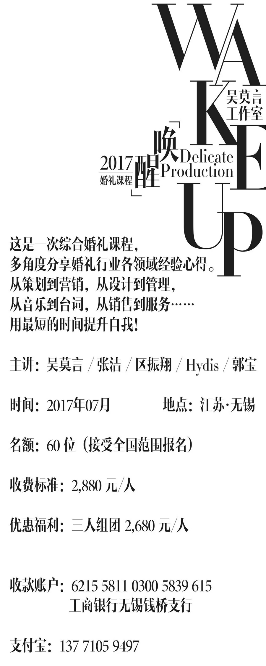 行业快报 | 吴莫言工作室2017《唤醒》婚礼课程 · 报名开启