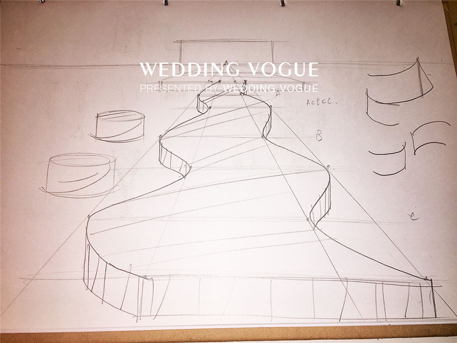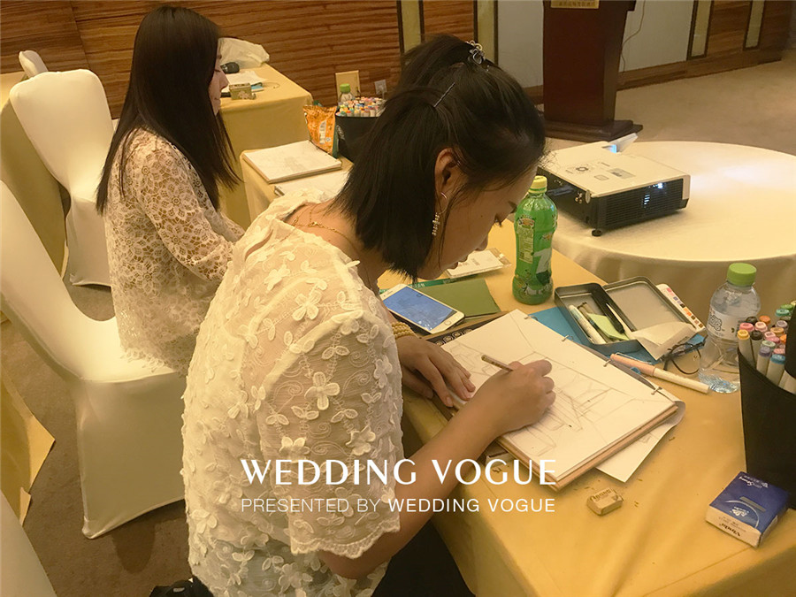 接下来,小城老师展示了婚礼上的曲线透视,总结了学员容易常犯的误区,指导如何去确认点位连线,与学员积极讨论,互动教学展示S型T台手绘方法。