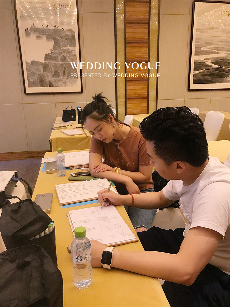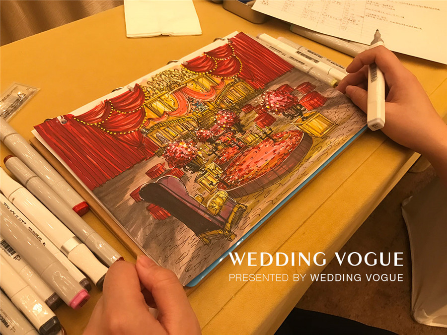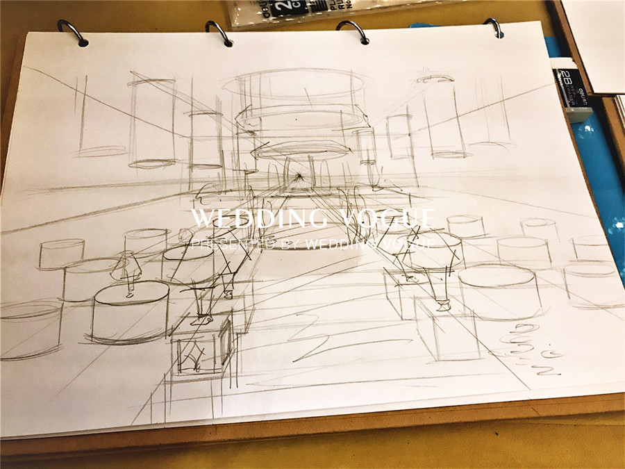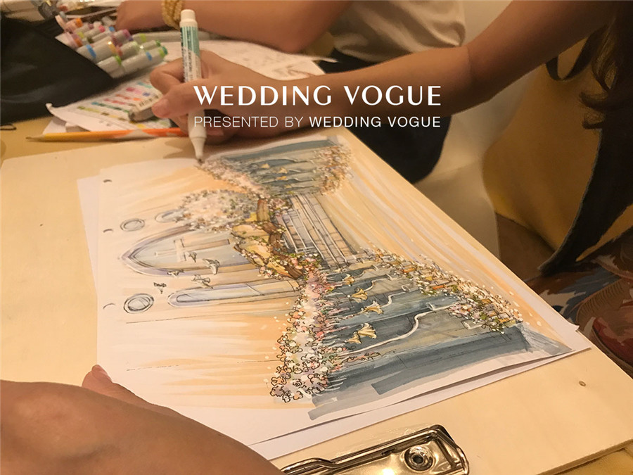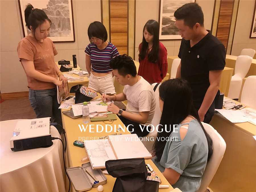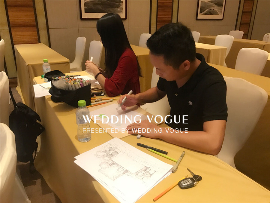 7月4日至7月6日,在三亚亚龙湾美高梅度假酒店樱瑕厅如期开展了为期3天的手绘专项进修课程,同学们从全国各地陆续赶到了现场。4日上午,小城老师悉心讲述了手绘中‘透视’的运用,以及‘一点透视’的原理,并亲自手绘线稿图,与学员现场解析如何手绘出一场合理的婚礼场景线稿图的规律与方法。