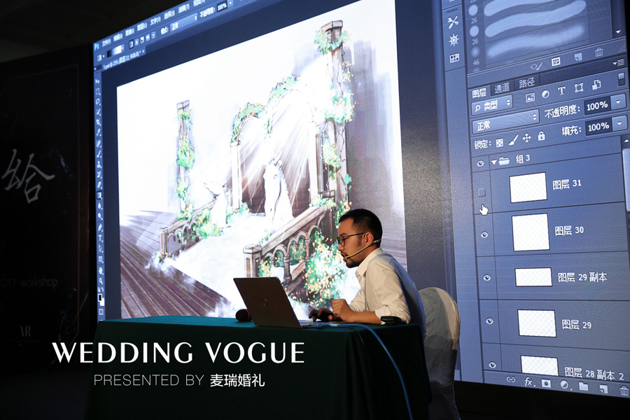 手绘一种生活的记忆,更是从事设计专业的人士不可或缺的技能。麦瑞的资深婚礼手绘老师给大家讲解了传统手绘和现如今常用手绘软件的区别,在现场更亲自展示了数位板和ps结合的强大。