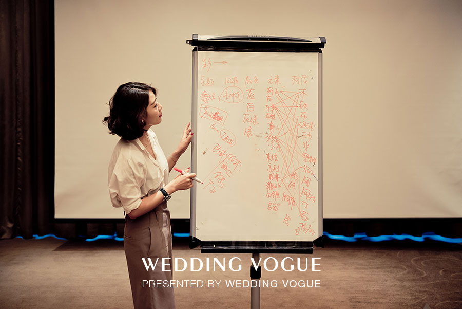 简宁通过一段简洁的阐述把最初的愿景,传达给了现场每一位学员,诉说了这几年来她与艾俪婚礼一起成长的故事和感动。她认为婚礼应该是艺术品、奢侈品,与‘时间’保持着微妙关系,拿出时间来好好做设计,让每一场婚礼拥有自己的时间,真实的考虑时间能给婚礼带来的独特,将浓度、机会、价值融合一起才能定义为奢侈品。与此相悖的是,很多客人要求快速得到结果、回报,婚礼成了‘速成品’,所以没有真正做到位的产品在当今仍有诱惑力和市场,与奢侈品背道而驰。希望每一位设计师都能够尊重时间,尊重一万小时定律,尊重自己的节奏。