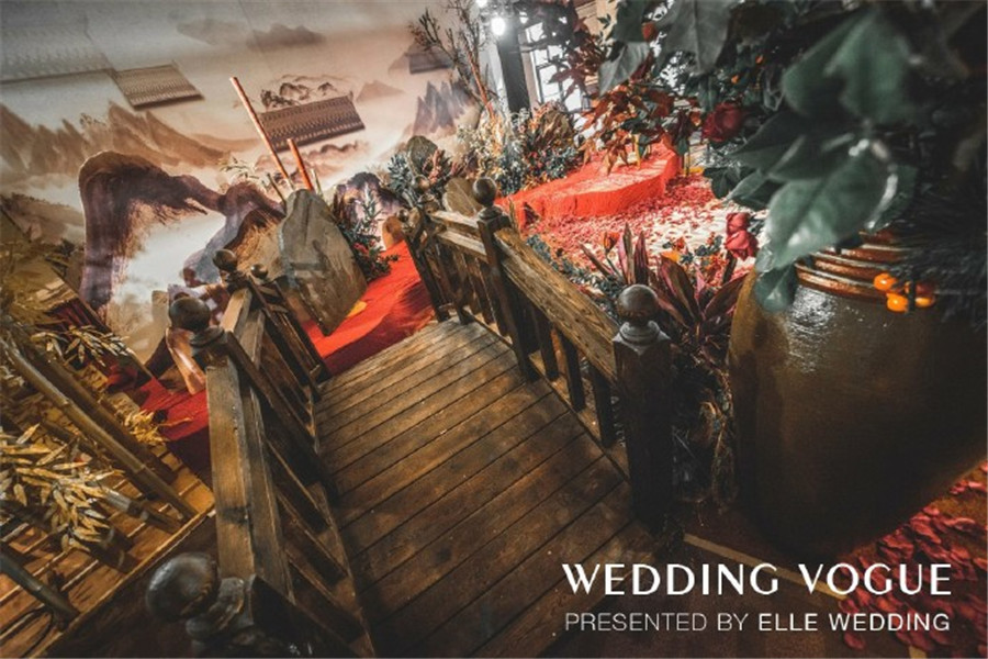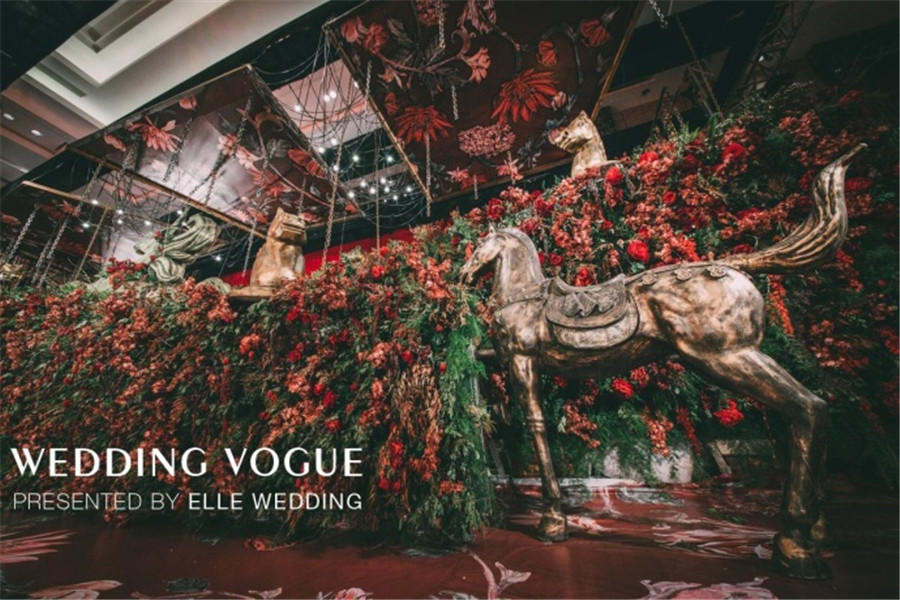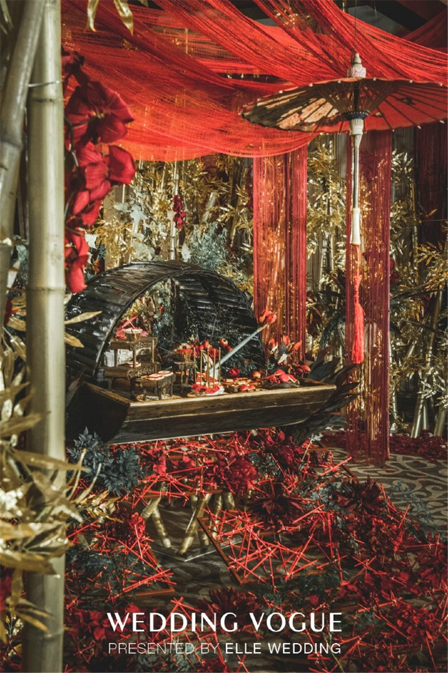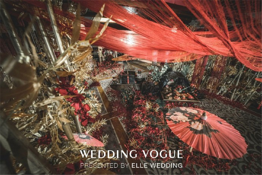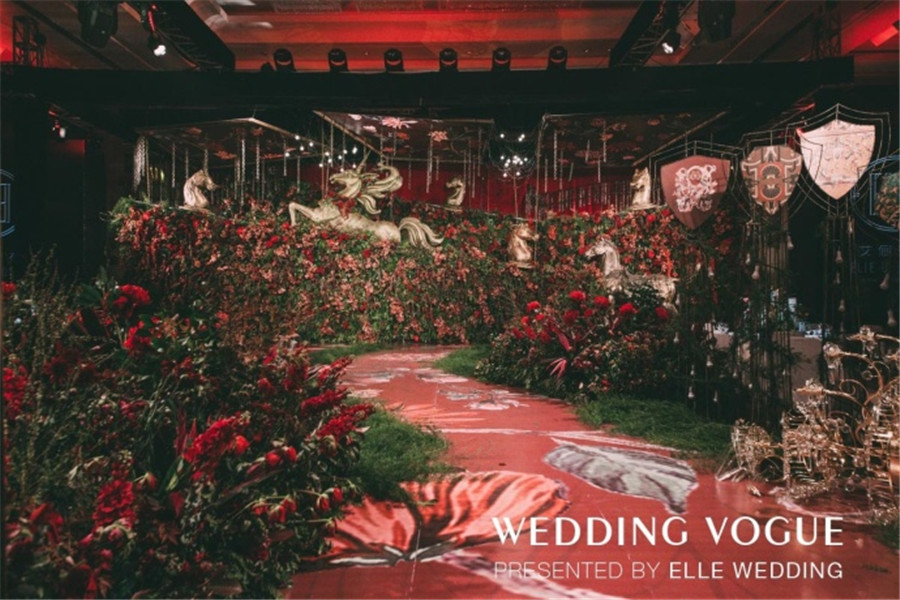 整场都有很强烈的张力,不仅是颜色、铁链、流苏皮具、包括很多细节的图案都是手绘师亲自手绘的,婚宴中任何一个细节都会追求极致的完美。