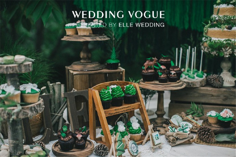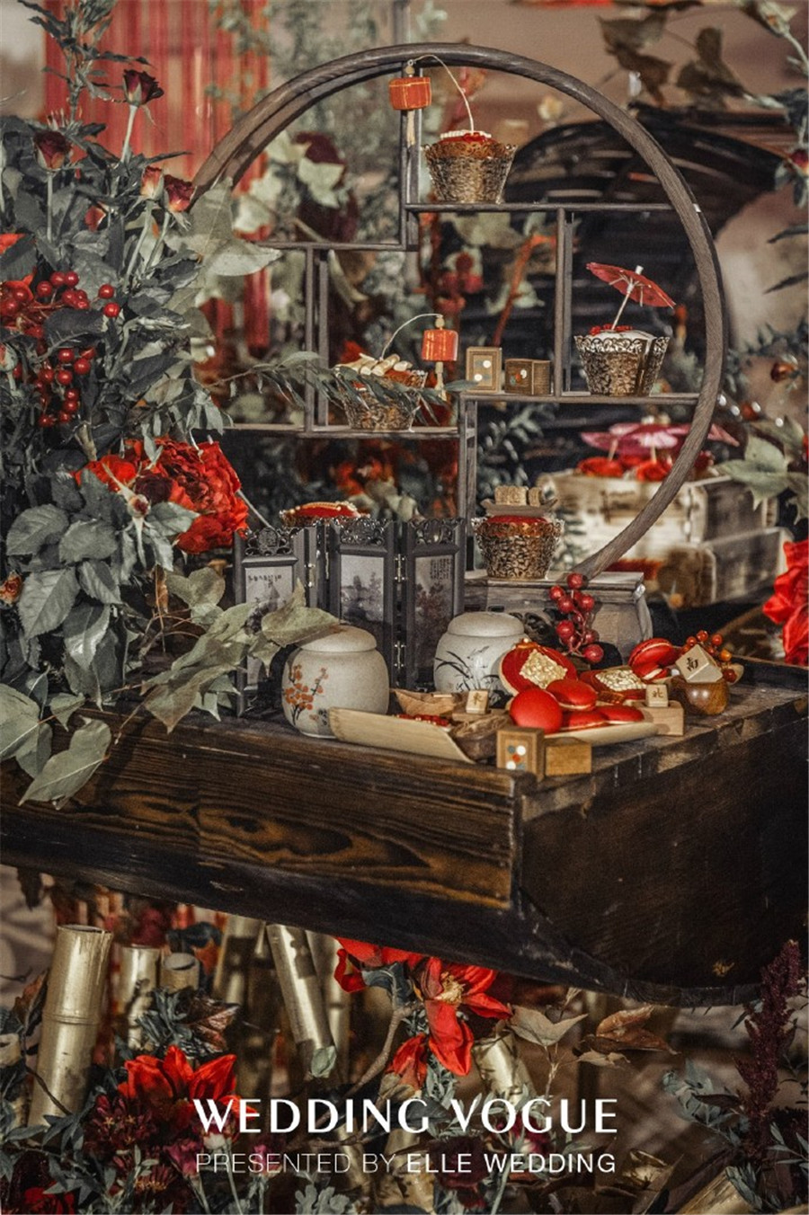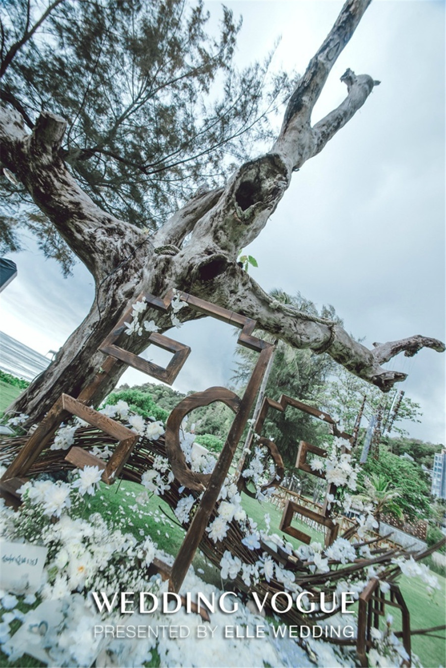 甜品区借用酒店的古树,沿用仪式区的屏风架构。