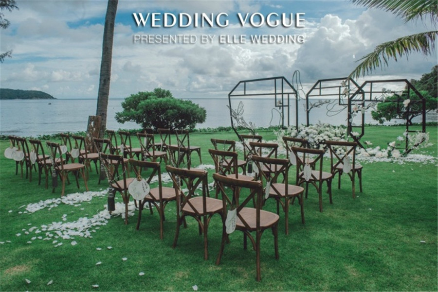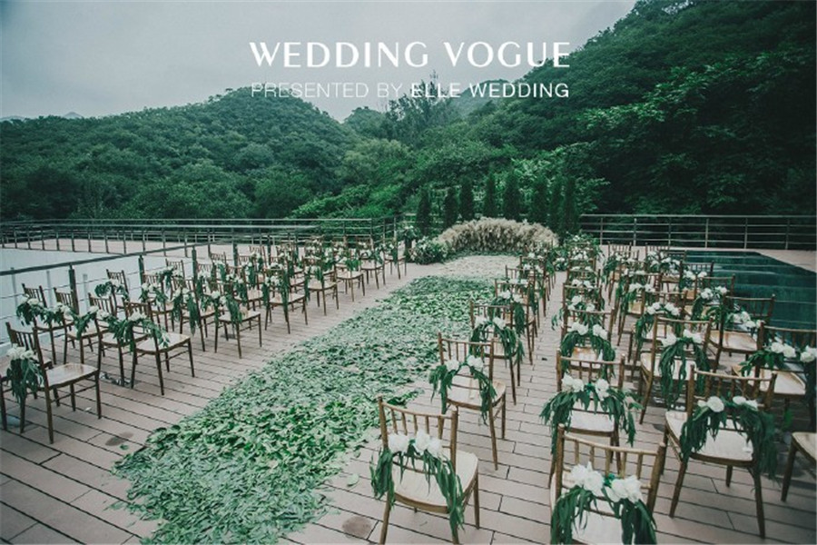 这场设计与山峦、树木融为整体,让新人感觉置身于大自然中,一场简约文艺的户外婚礼布置。