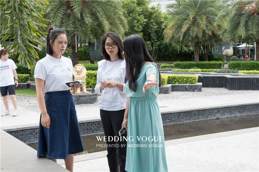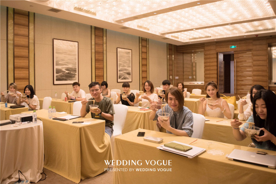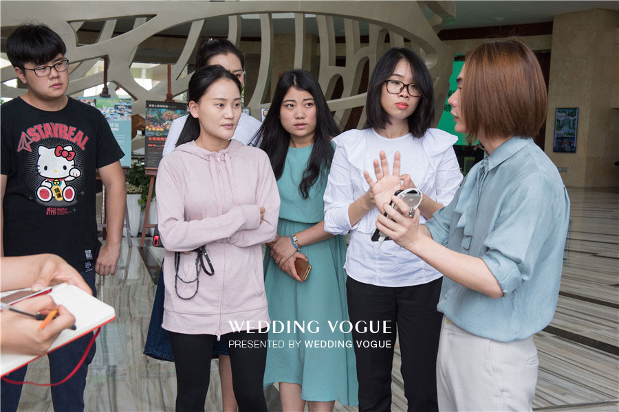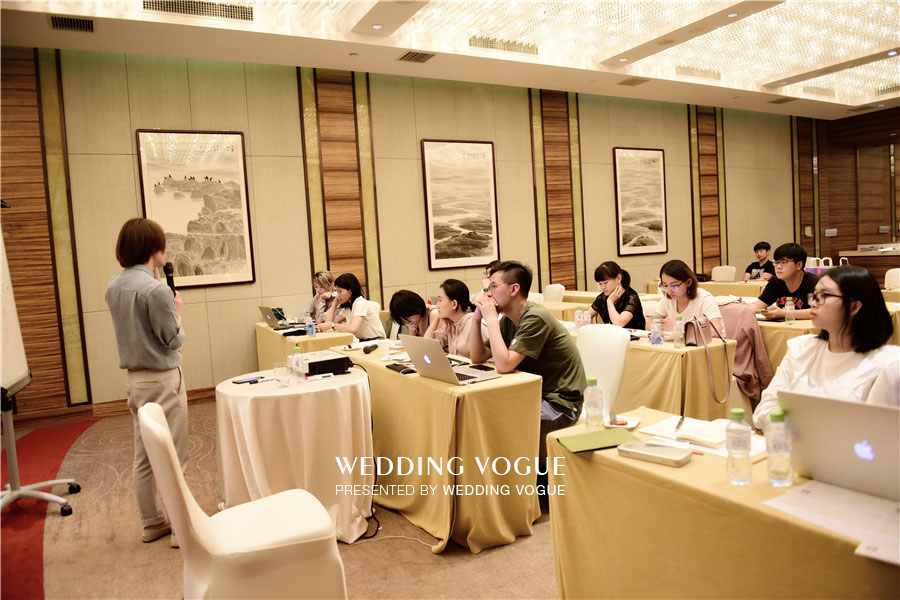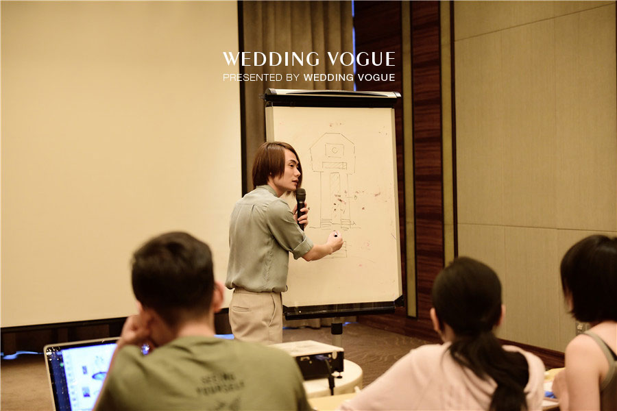 空间艺术的光源设计,利用最简单的灯光做最精美的设计。例如建筑设计是结合自然光,对材质的反应有极高的讲究。赖教授通过图片中色彩搭配及背景色带学员深入了解背景色及搭配的重要性。色彩和光影需要完美的结合在一起,利用光源营造出有层次的质感,把宴会中的色彩和所处的环境融合的恰到好处。在舞台上,包括任何舞美、仪式区的设计,所有的环境都是围绕主人翁的,新人站在其中应该成为一个整体,起到画龙点睛的作用。下午,赖教授带领学员来到美高梅度假酒店大厅前的一条长廊,让学员们分组进行现场实景改造设计,两个小时内设计出一场在傍晚举行的奢侈品fashion show,要考虑品牌、酒店文化和光的运用,需要学员们激发自己的潜力和脑洞创造出思路、手绘和提案。