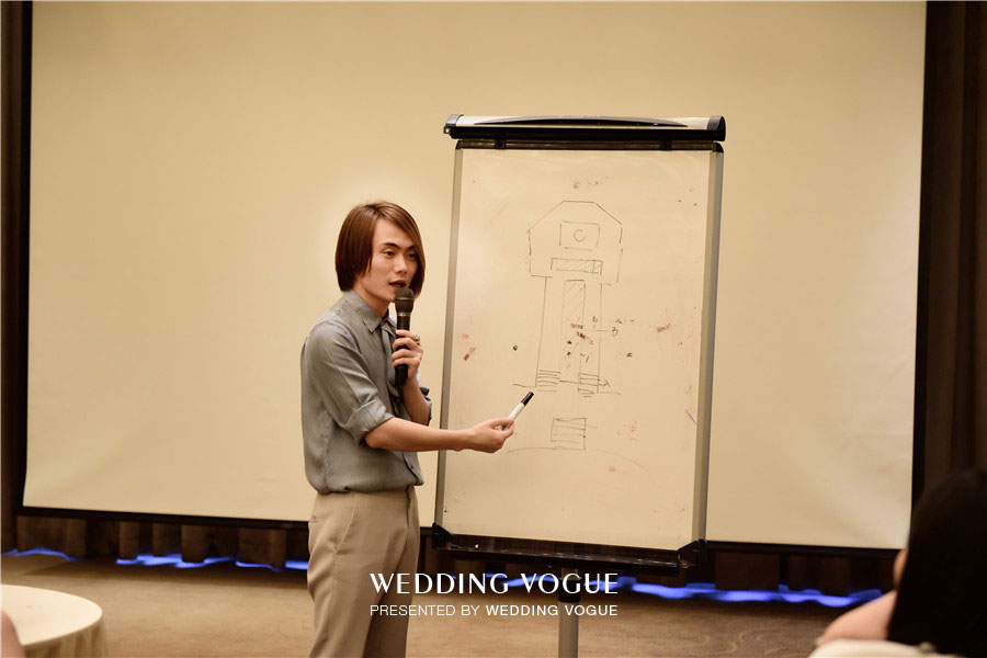下午,赖教授设定了一场晚宴主题——Chanel在故宫办宝宝宴,让学员跳脱婚礼人的思维进行创作,通过不同的设计和创作理念深入了解每个学员的优缺点和思维模式。用现代的语言来描述古代的文化,不论是时装、建筑、家装等等,所有的元素其实就是灵魂,当同一个灵魂通过不同载体、线条、表现手法表现出来的时候,就会产生新的艺术。设计中不同的尺寸和比例同样会带来视觉中不同的感官冲击。