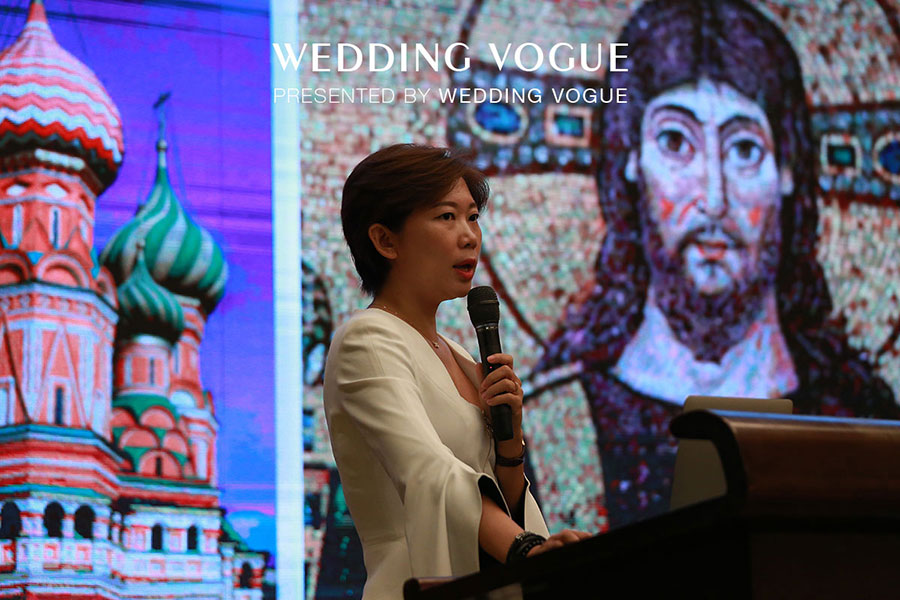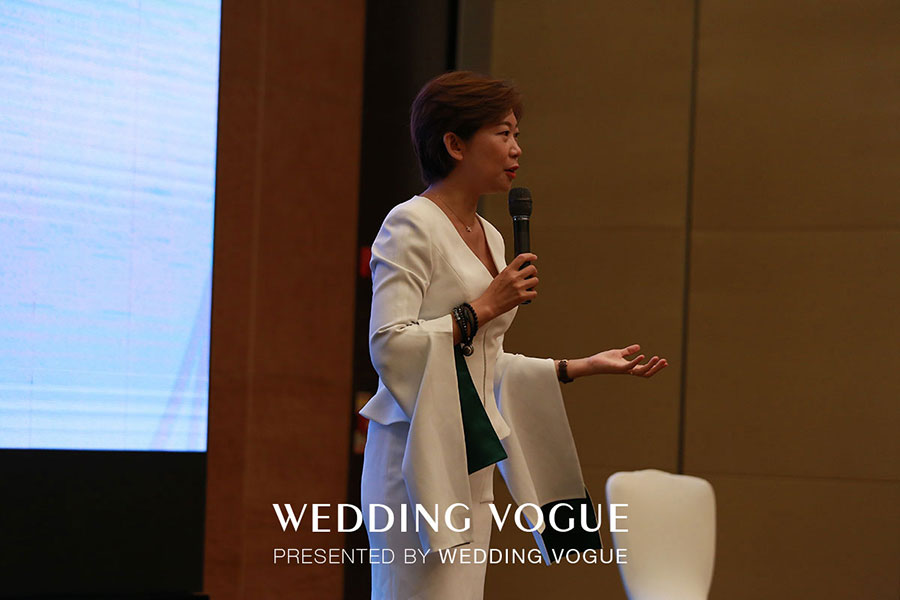 首日设计类分享课程在下午进行,主讲嘉宾分别是摩卡婚礼联合创始人、明星婚礼专家潘珍玉,京玺国际婚礼创办人、海岛婚礼专家ARIEL,以及来自马来西亚的海外婚礼策划师 Ken G ,主持人海少负责本场课程的串场主持。