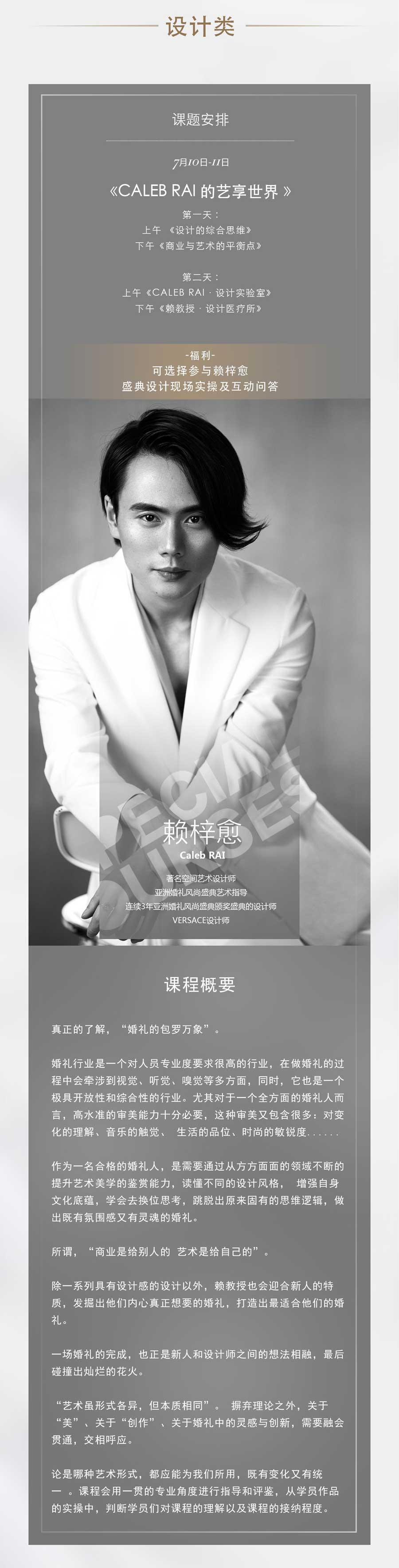 7月10—11日:赖梓愈专项课程《CALEB RAI的艺享世界》