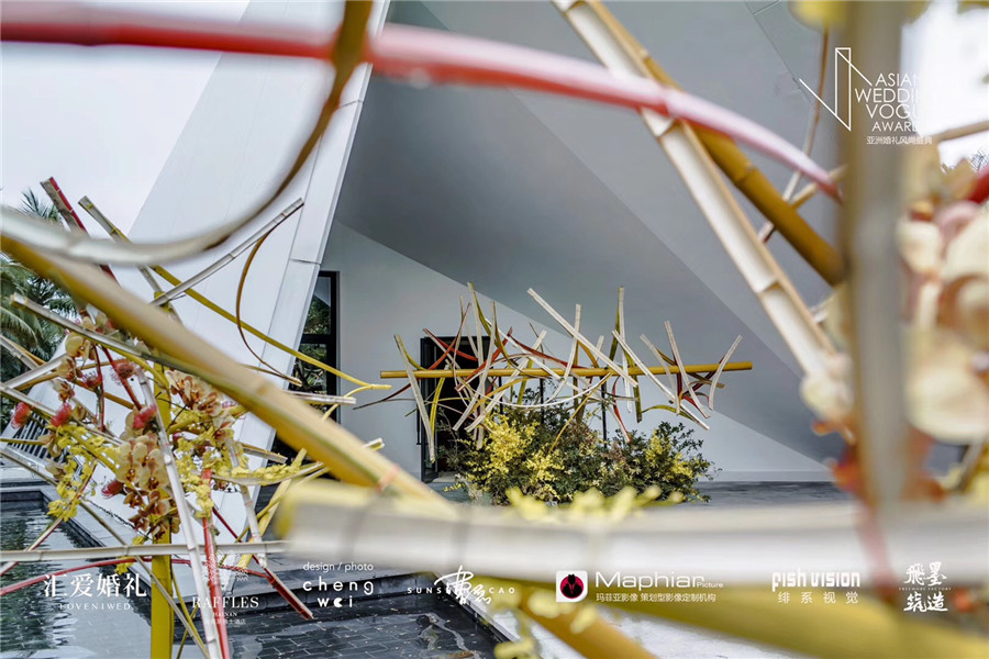 觉得三亚的夏天是热情,奔放,可却不曾想到一场橙黄色交织的宴会设计发布让我感受到了一个温暖、柔和的三亚。7月17日,汇爱婚礼&成伟在海南雅居乐莱佛士酒店的水上教堂带我们领略了一次旖旎风光。