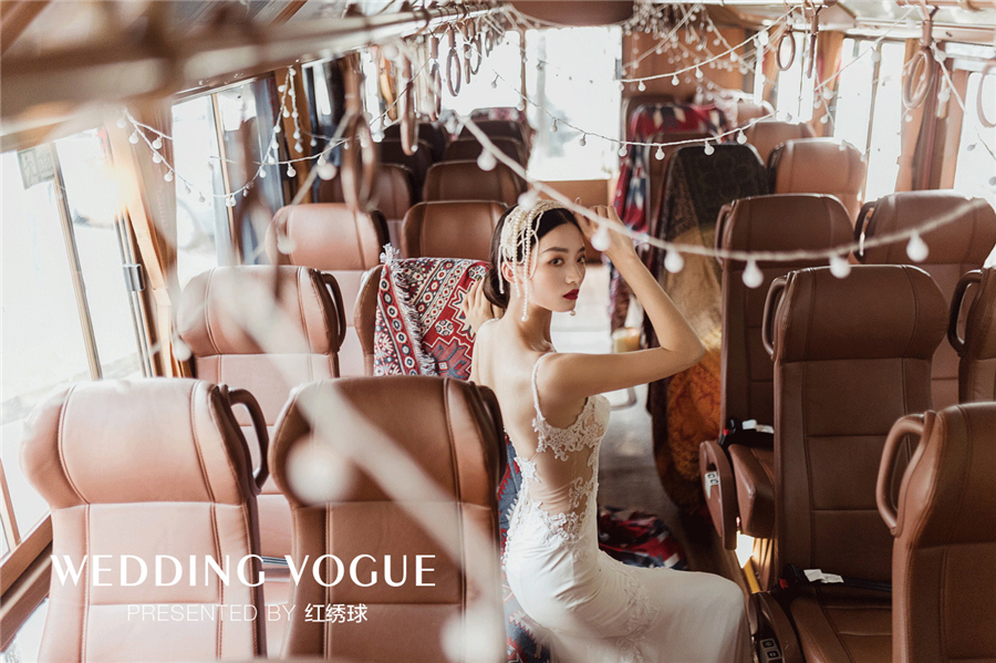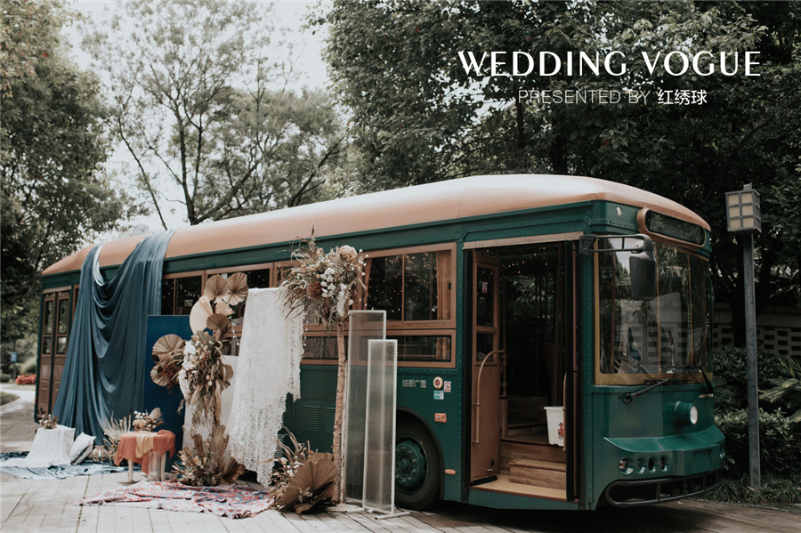 为了增添本次婚礼的趣味性及参与感,红绣球特意准备了婚礼巴士,供现场的准新人们拍照打卡。