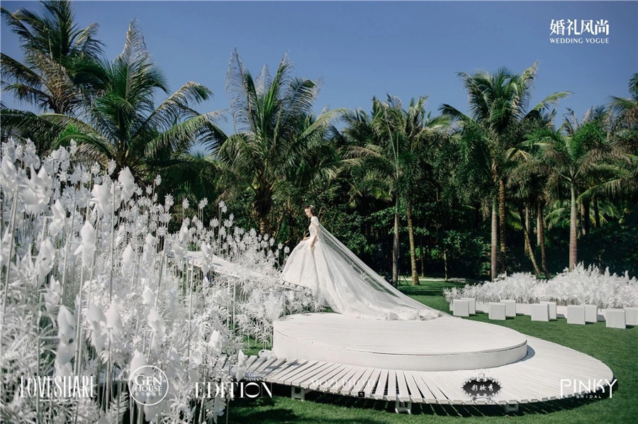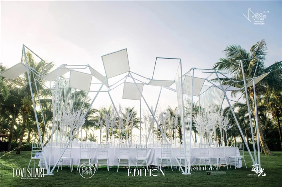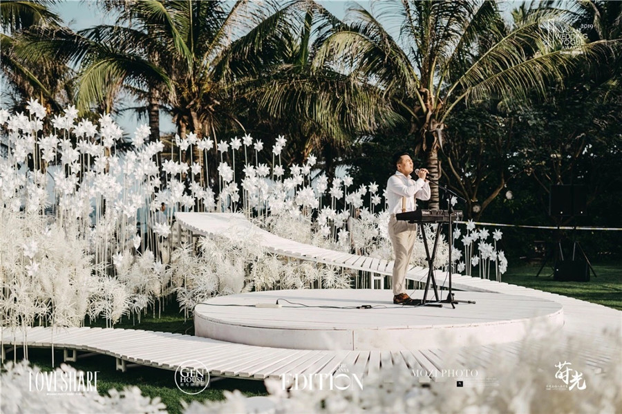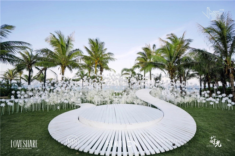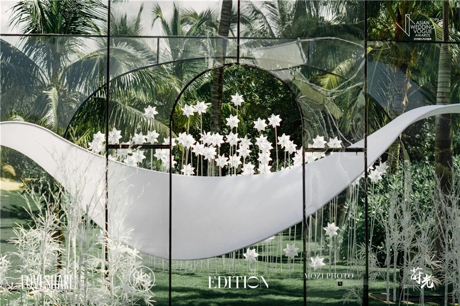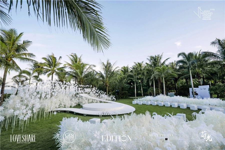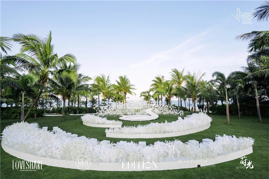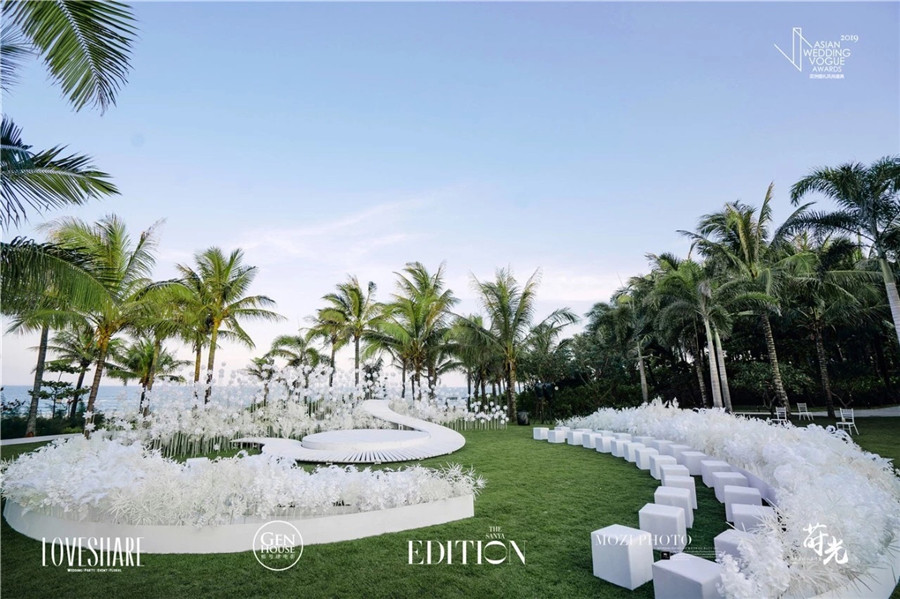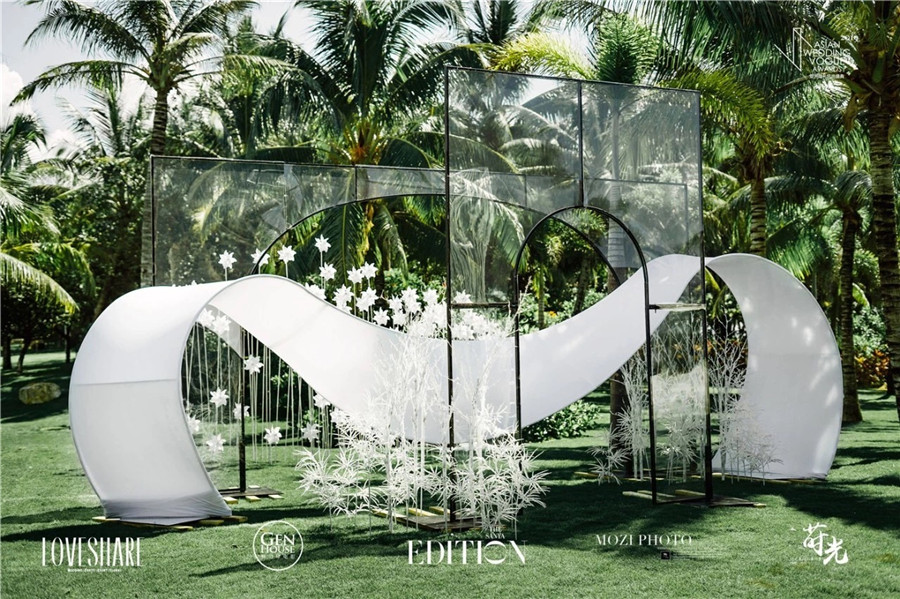 LoveShare爱享在三亚艾迪逊酒店临近海滩的沙滩椰林草坪上发布一场名为:《夏光浮影》的户外宴会设计。以目的地婚礼设计与酒店特色结合的方式,为现场的来宾带来真实、美好的体验感。
