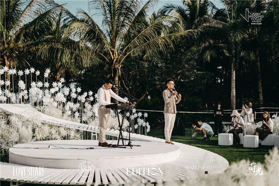 绿色的草坪中央,白色的圆形舞台,被海风撩拨不停旋转的风车。蓝天,白云,椰林,在歌声的陪伴下,让大家想起了爱情中的甜蜜和苦涩。